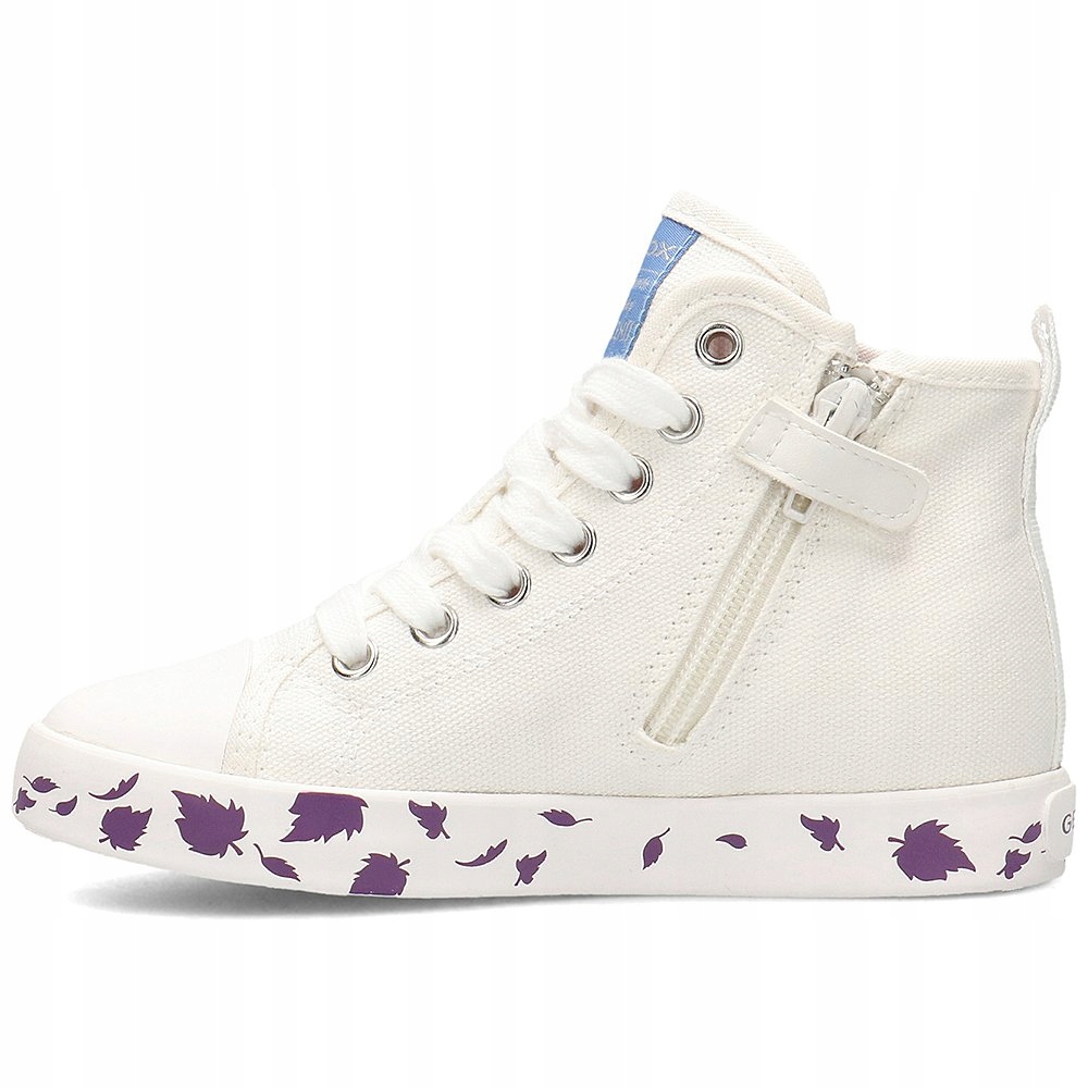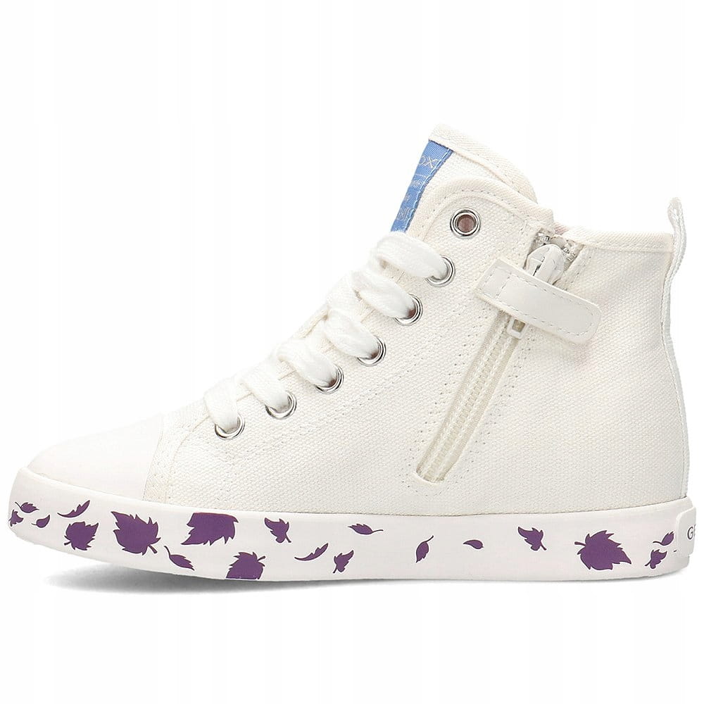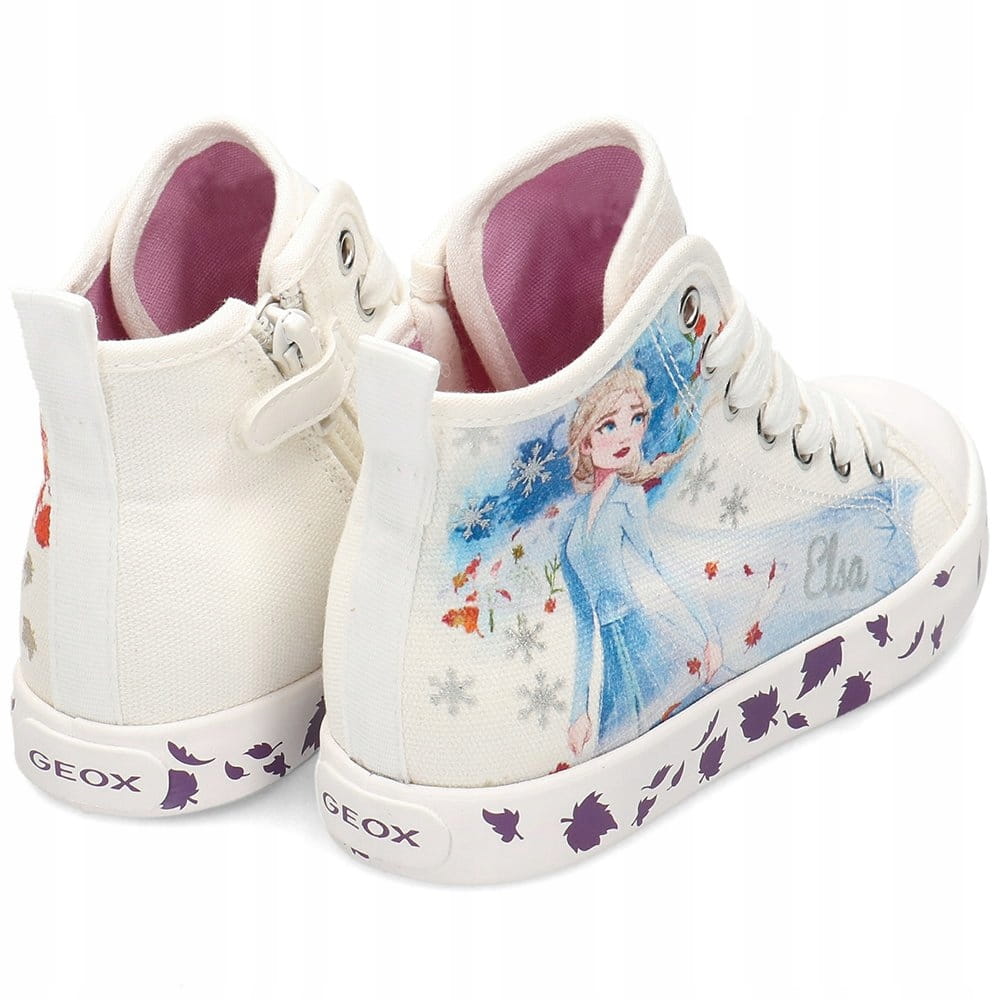 Buty dziecięce marki GEOX. Canvasowe trampki mają charakter, dzięki czemu można nimi świetnie uzupełnić dziecięcą stylizację. Biały model wzbogacono bohaterkami popularnej bajki Frozen. Materiałowa podszewka wyklucza pojawienie się odcisków. Wkładka skórzana, profilowana, z możliwością wyjęcia. Dzięki niej stopy oddychają, ma właściwości antybakteryjne i amortyzuje drgania. Mocne sznurowanie dokładnie dopasuje buty do kształtu stóp. Boczne zapięcie na suwak ułatwia ich zakładanie i zdejmowanie. Okrągły nosek oferuje luz dla palców u stóp. Podeszwa z bieżnikiem i technologią Respira, która odprowadza pot i wilgoć, pozostawiając uczucie świeżości i przyjemnego ciepła. Wkładka profilowana, wyjmowana. Długości wkładek podane przy rozmiarach są sugerowane przez producenta i w związku z tym należy traktować je wyłącznie poglądowo.