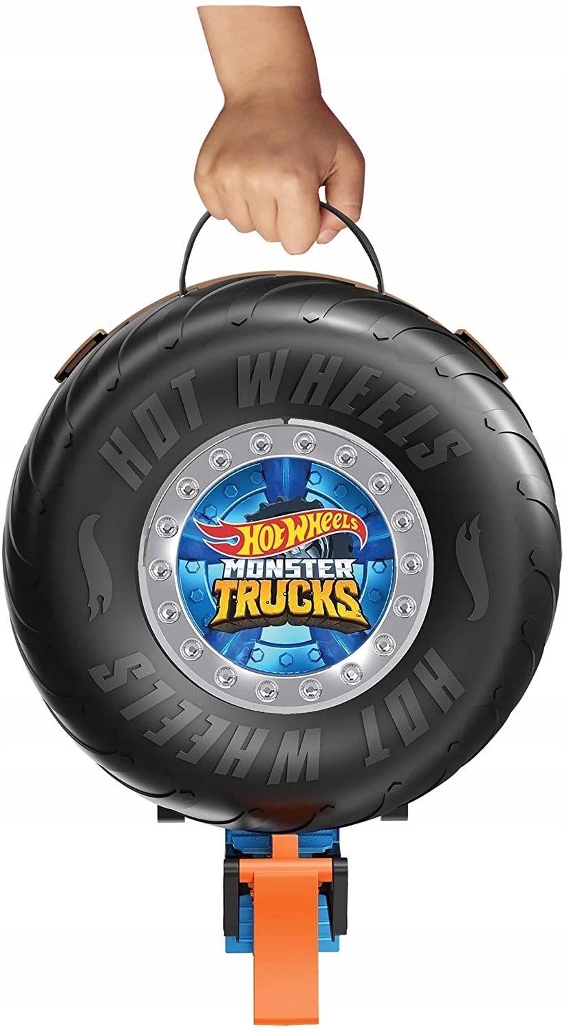 Opona – Kaskaderska arena Hot Wheels® Monster Trucks to łatwy do przenoszenia otwierany zestaw zawierający arenę doskonałą do epickich sztuczek, kraks i przechowywania pojazdów.