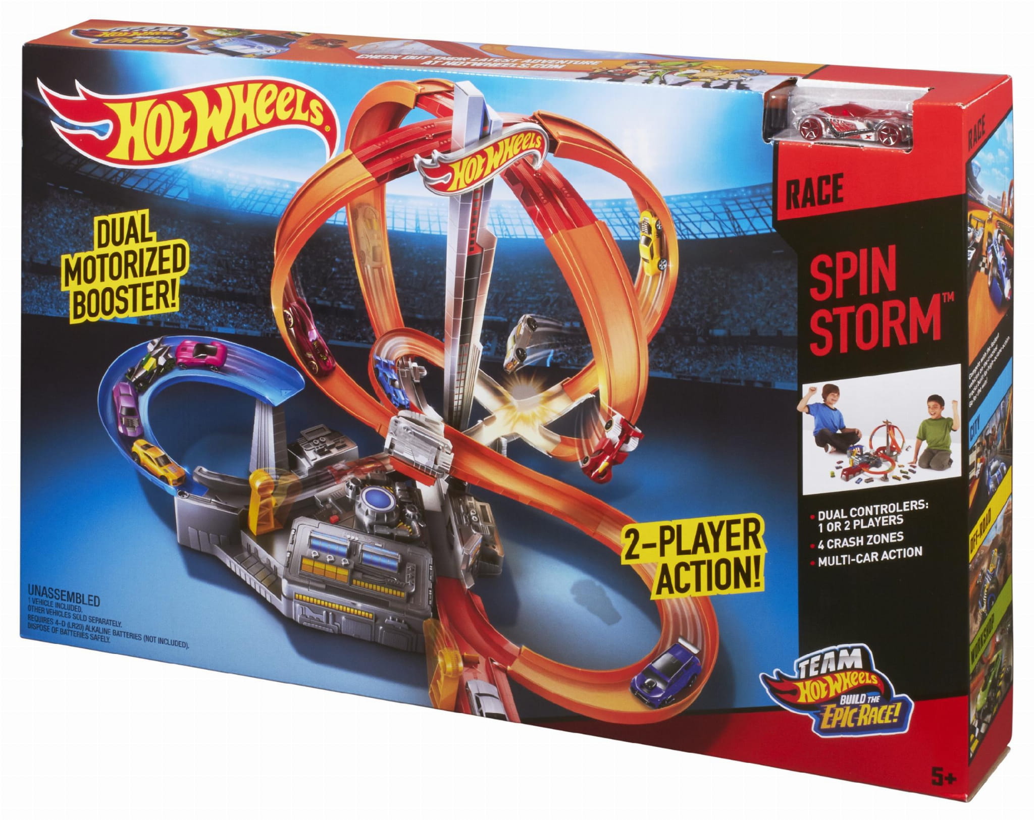 Zestaw łączy się z innymi torami Hot Wheels (sprzedawanymi oddzielnie), pozwalając budować świat pełen zabawy. W zestawie znajduje się jeden pojazd Hot Wheels, dzięki czemu możesz zacząć zabawę zaraz po otwarciu pudełka.