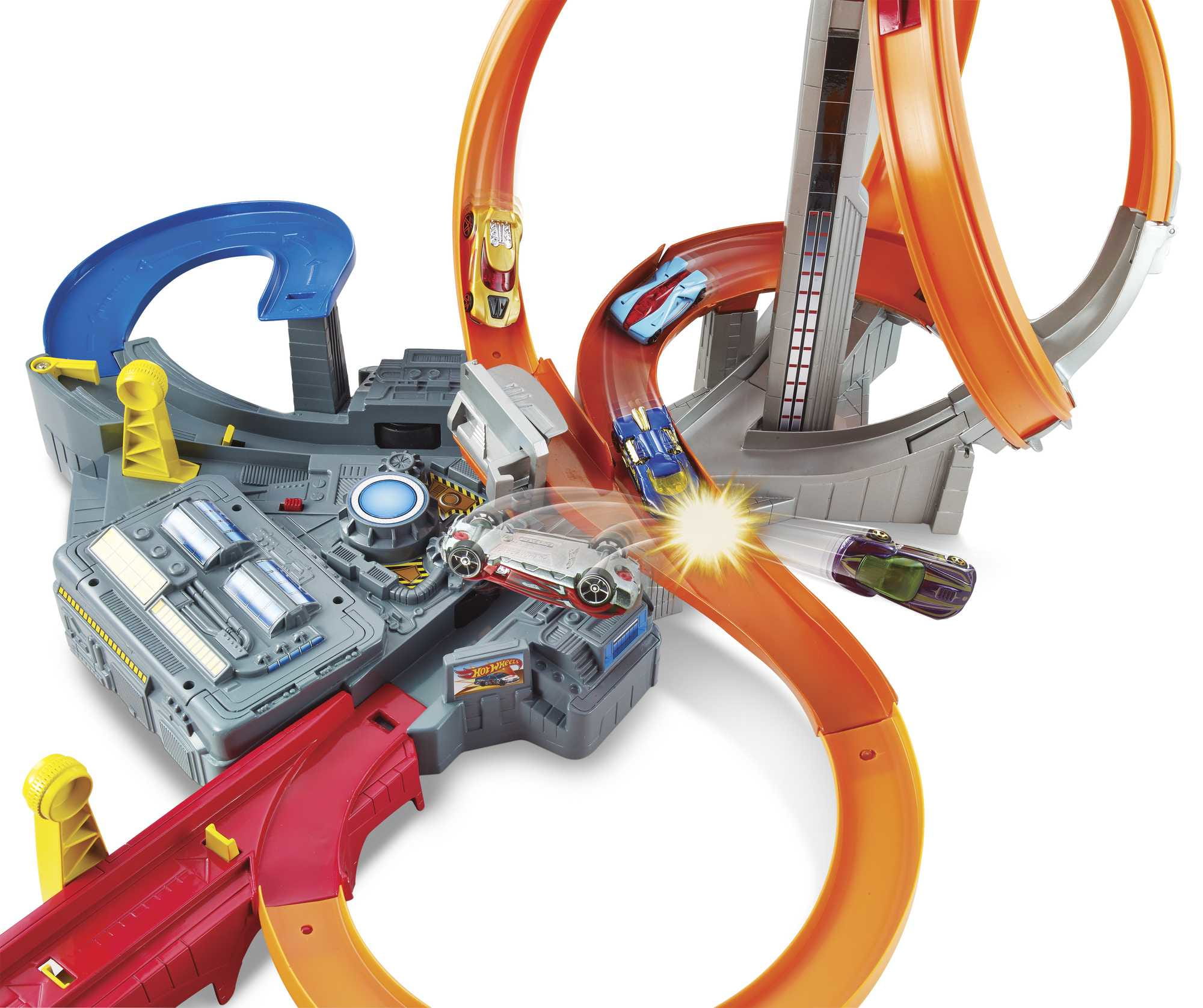 Pojazdy pokonują w szaleńczym tempie okrążenie za okrążeniem i nigdy nie wiadomo, kiedy dojdzie do kraksy! Dzięki temu zestawowi Hot Wheels ekstremalnie napędzona akcja na torze kręci się jak nigdy dotąd. Dzieci mogą wstrzeliwać pojazdy na tor, wysyłać je na kolejne zakręty i przemykać tuż przed zderzakami, aż do ekscytujących kolizji w trzech strefach kraks.
