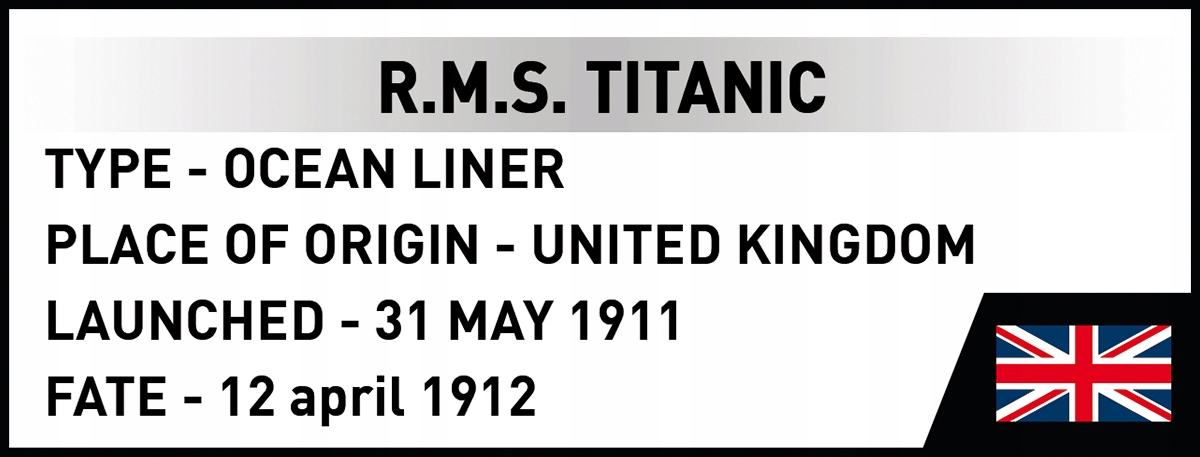 Zestaw w skali 1:450, składający się z 848 starannie zaprojektowanych elementów, umożliwia zbudowanie kompaktowe wersji legendarnego statku, który w 1912 roku wyruszył w swój słynny pierwszy rejs. Model łączy precyzyjną konstrukcję z efektownym wyglądem, gwarantując fascynującą przygodę zarówno młodym budowniczym, jak i doświadczonym kolekcjonerom.