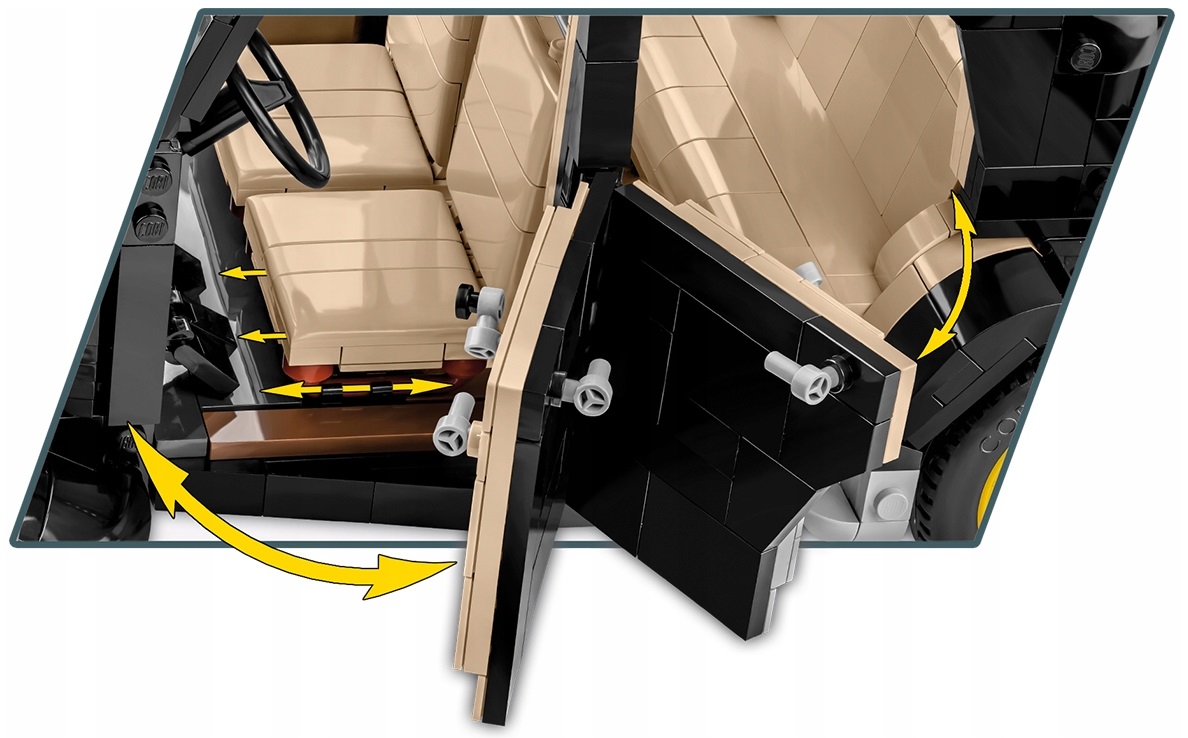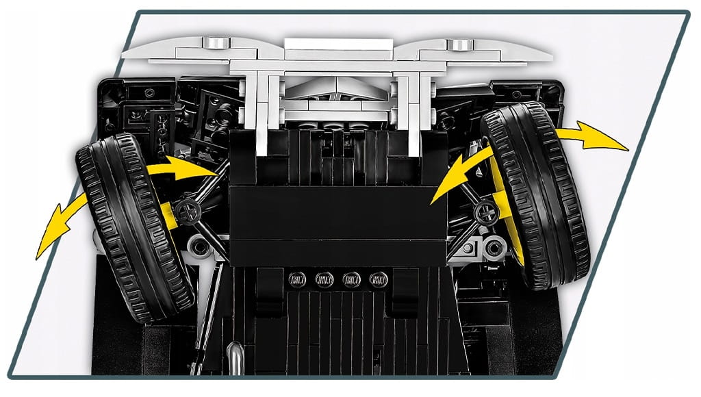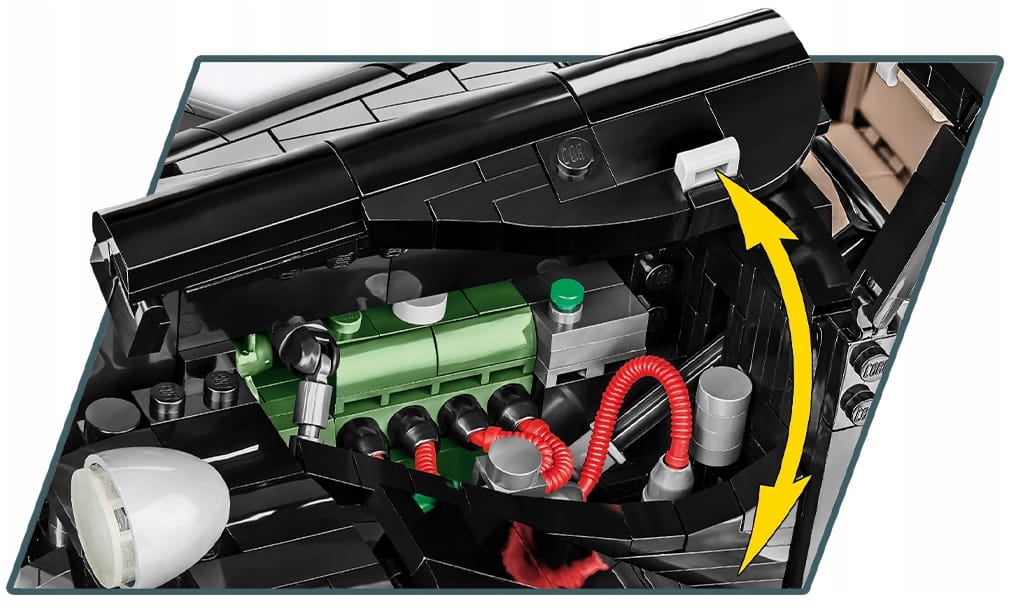 Zestaw zawierający się z ponad 2000 elementów to nie tylko samochód z obracającymi się kołami, otwieranymi drzwiami, ale również działająca kierownica i skrętne koła, uchylna maska, otwierany bagażnik, odwzorowany wygląd silnika oraz odtworzone z klocków liczne detale wnętrza samochodu.