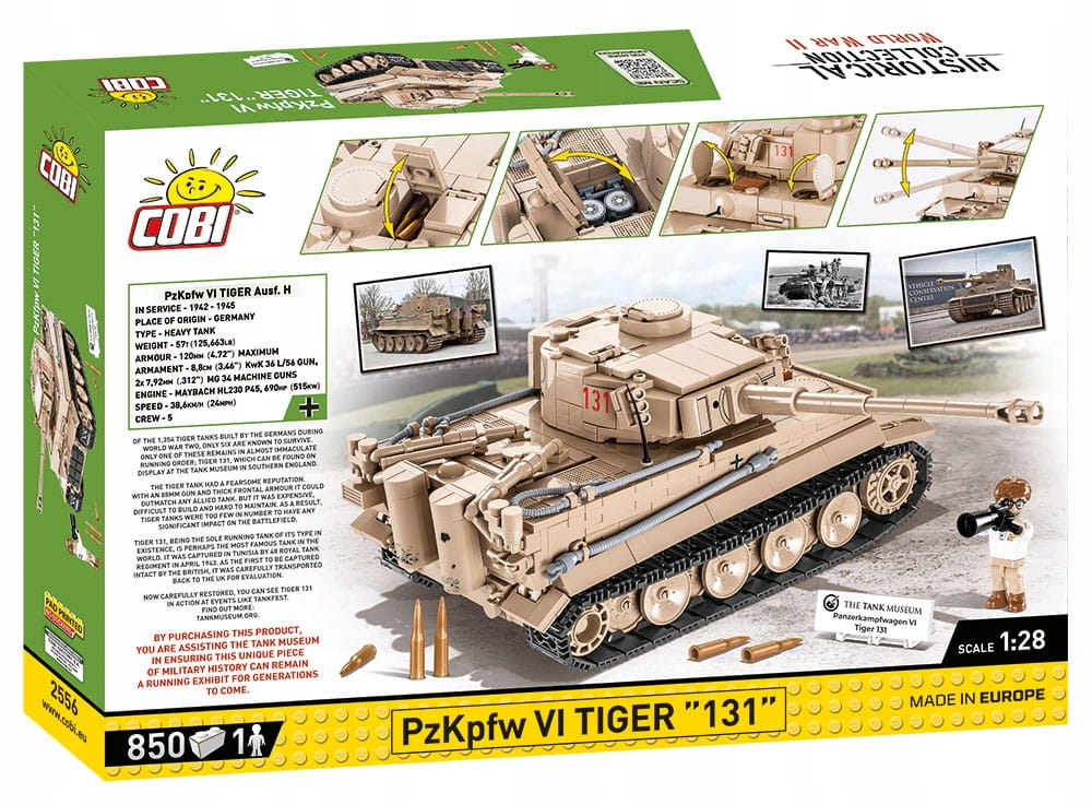 Wyjątkowy model bardzo rozpoznawalnego i pozostającego wciąż na chodzie czołgu. PzKpfw VI Tiger z numerem 131 został w trakcie wojny przejęty przez Brytyjczyków i obecnie jest największą atrakcją Bovington, The Tank Museum!