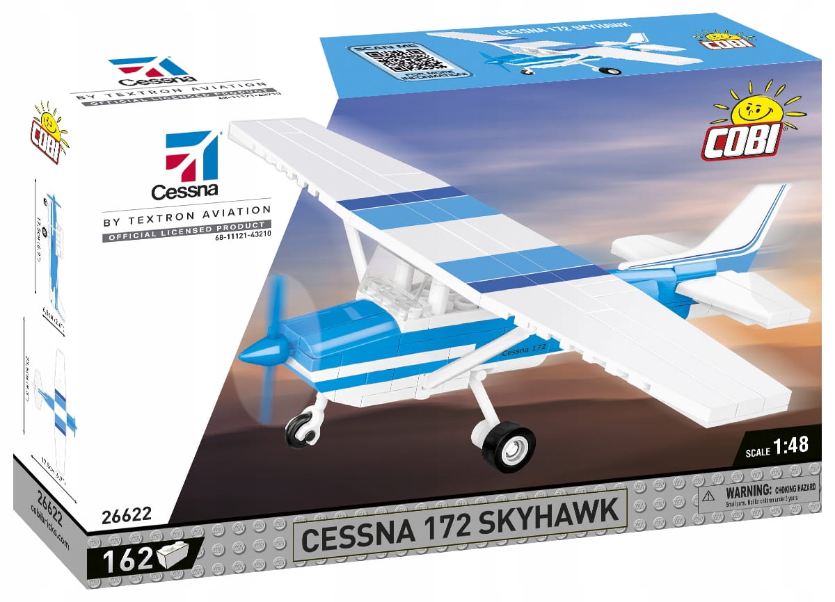 Swoim rozmiarem doskonale pasuje do kolekcji naszych współczesnych samolotów. Model posiada obracające się koła i ruchome śmigło. Na klockach znajdują się nadruki. Tutaj nie ma naklejek! Specjalnie na potrzeby tego zestawu zaprojektowaliśmy nowy kształt klocka – statecznik pionowy, aby nasz model możliwie realistycznie naśladował swój pierwowzór. Budowa zestawu jest prosta i przebiega bezproblemowo dzięki papierowej czytelnej instrukcji. Klockowa Cessna 172 Skyhawk to model obowiązkowy dla pasjonatów lotnictwa cywilnego.