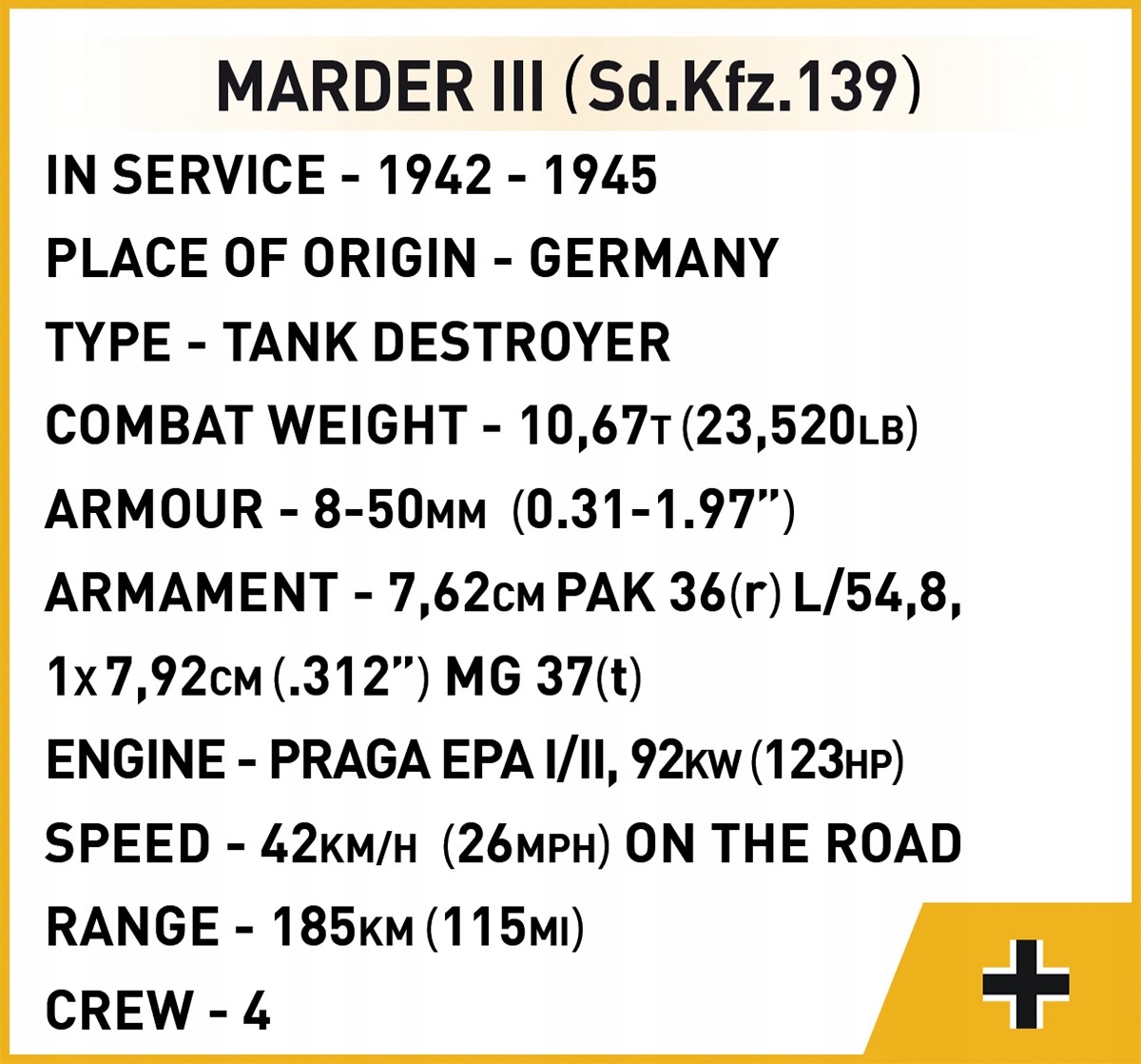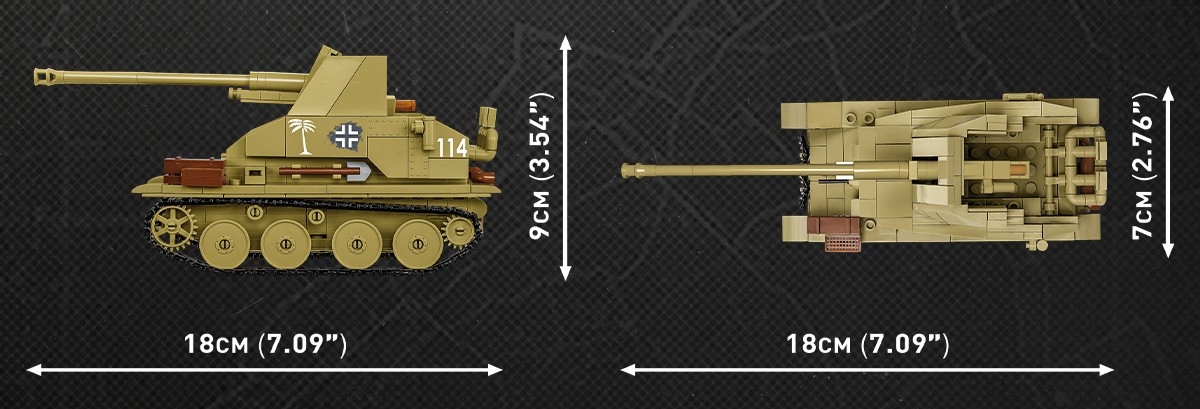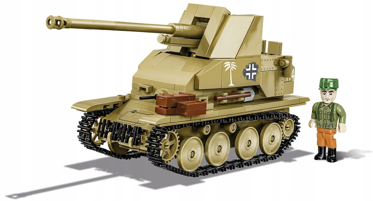 MARDER III został opracowany w skali 1:35 pasującej do figurek i składa się z 63 klocków konstrukcyjnych.