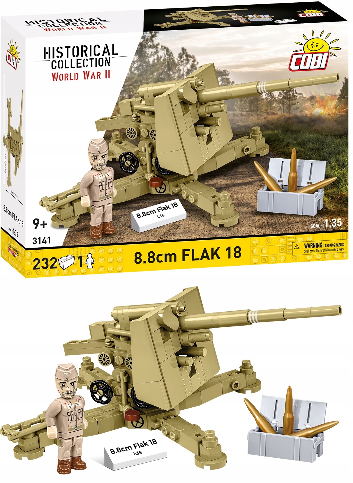 - 232 elementy - W komplecie otrzymujesz model działa niemieckiej produkcji 8,8 cm Flak 18 na łuku krzyżowym w piaskowym malowaniu Deutsches Afrikakorps.