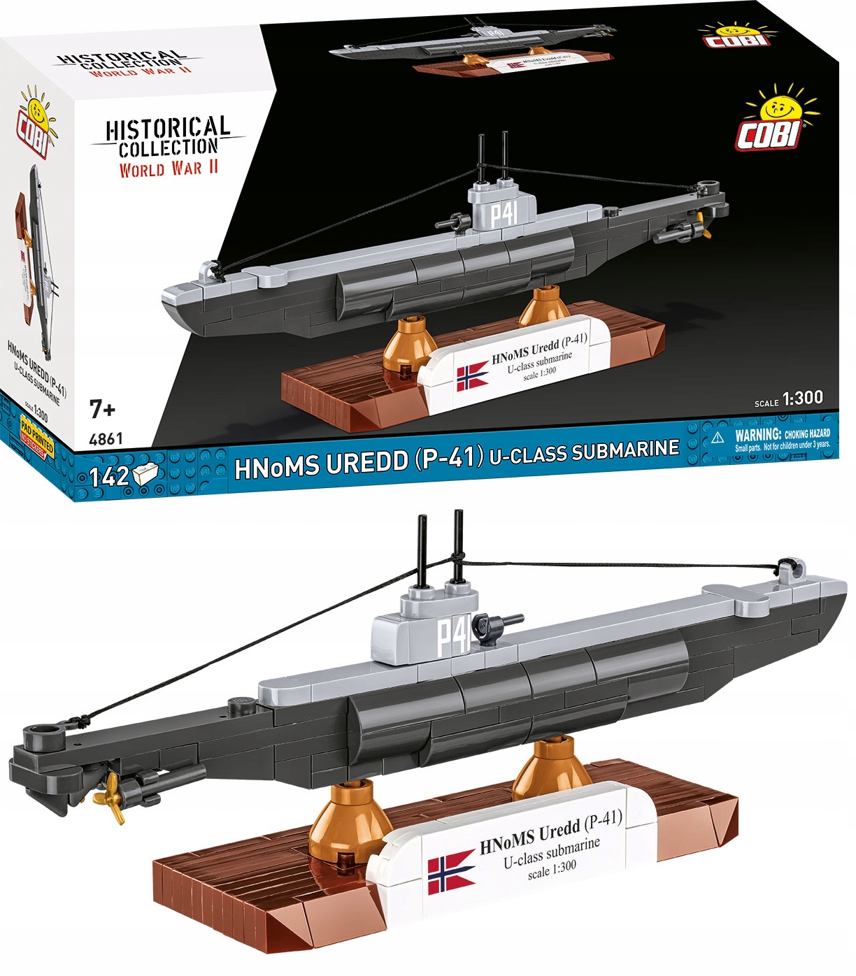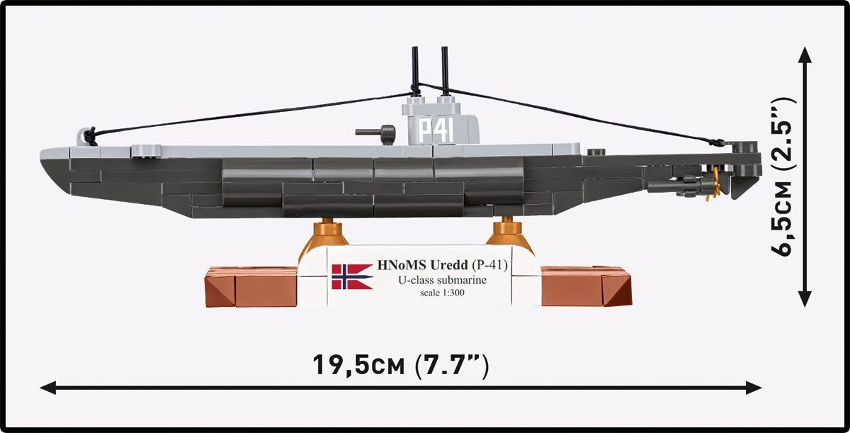 - Skala 1:300 –model doskonale uzupełnia serię okrętów COBI w skali 1:300, obok min. ORP Orzeł, ORP Dzik, HMS Upholder, czy niemieckich jednostek jak U-47 i U-96.