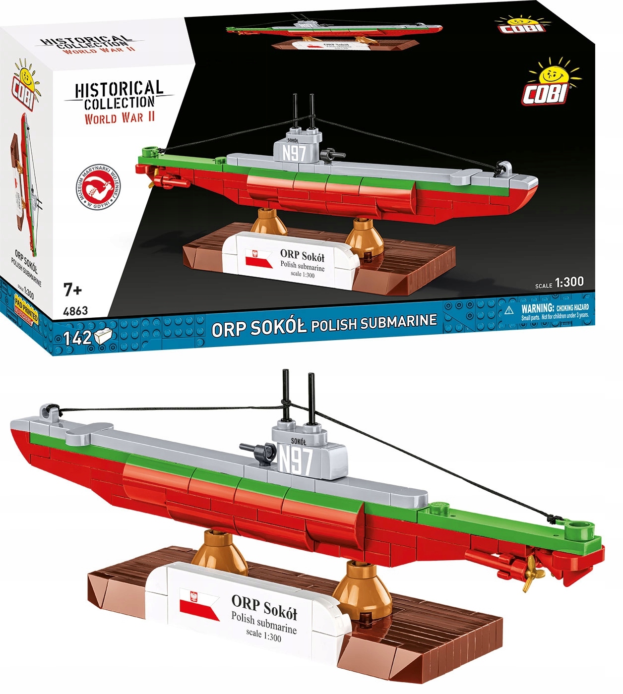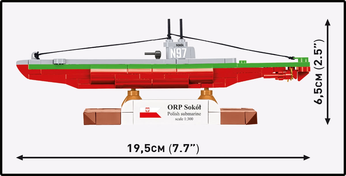 - Kolekcjonerski charakter – model doskonale uzupełnia serię okrętów COBI w skali 1:300, obok m.in. ORP Orzeł, ORP Dzik, HNoMS Uredd, HMS Upholder, czy niemieckich jednostek, takich jak U-47 i U-96.
