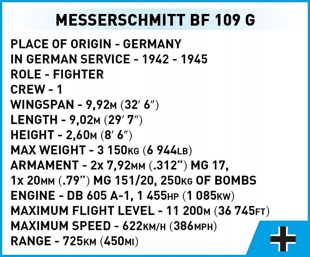 KLOCKI COBI 5761 Samolot Messerschmitt Bf 109 GUSTAV GUSTAW myśliwiec