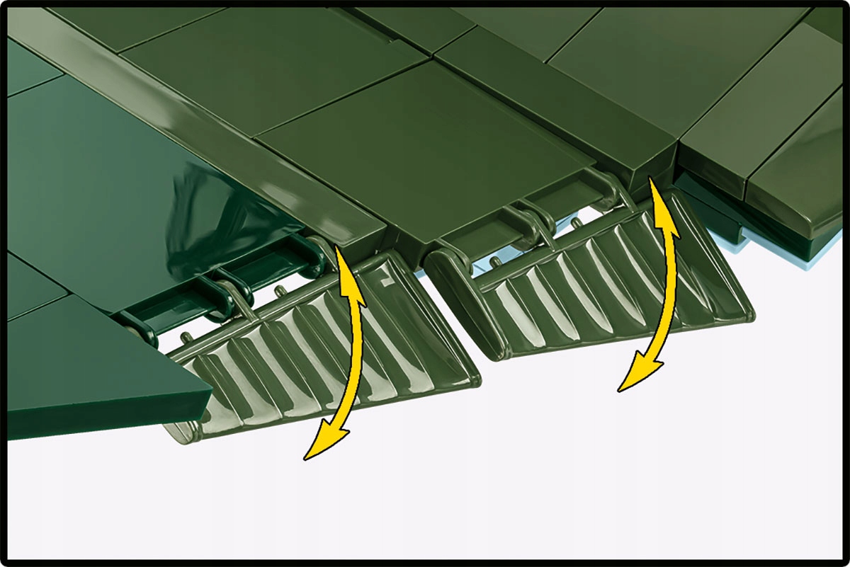 - Nadruki wysokiej jakości – model nie zawiera naklejek. Wszystkie godła, insygnia, numery i oznaczenia są nadrukowane bezpośrednio na klockach, dzięki czemu są trwałe, precyzyjne i odporne na ścieranie. Na kadłubie modelu mamy odwzorowany widoczny mały „znak czołgu”, takie symbole oznaczały potwierdzone trafienia i zniszczenia wrogich pojazdów pancernych.