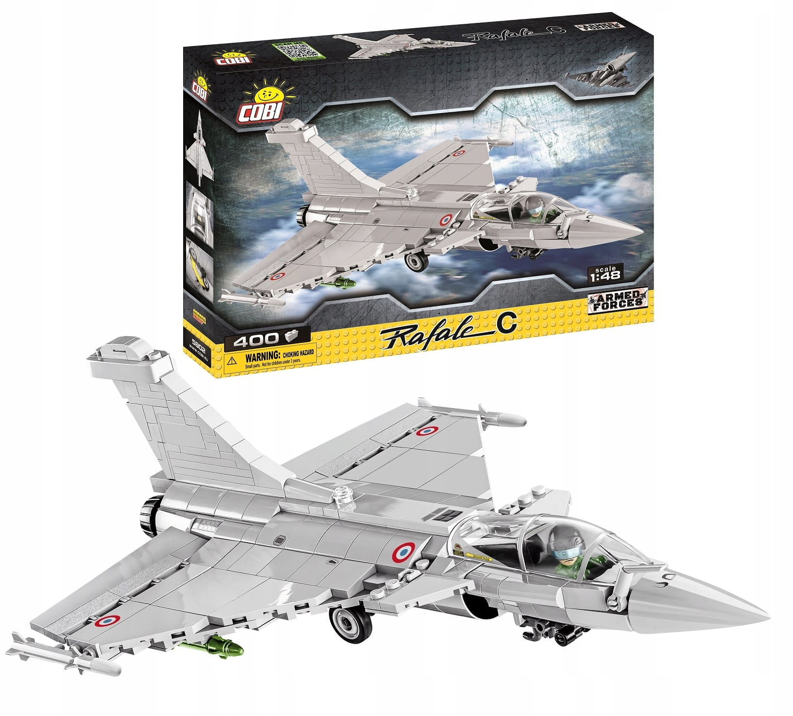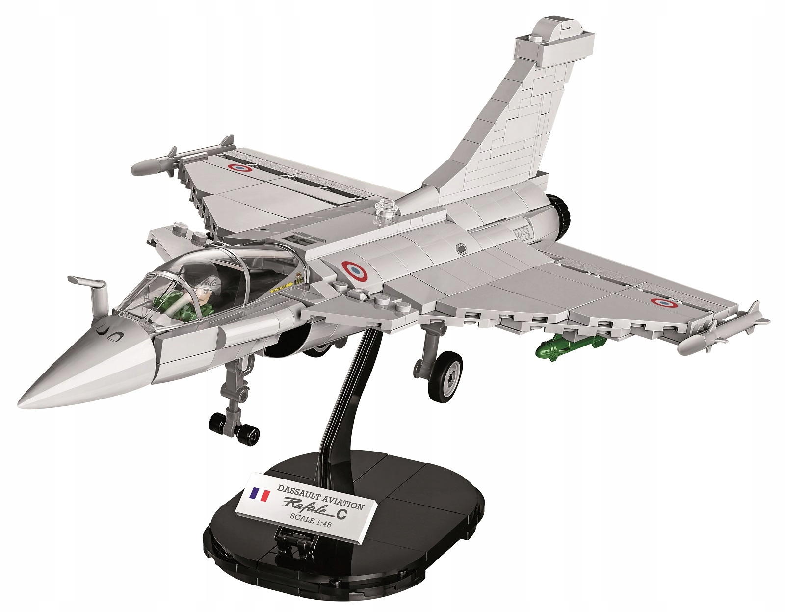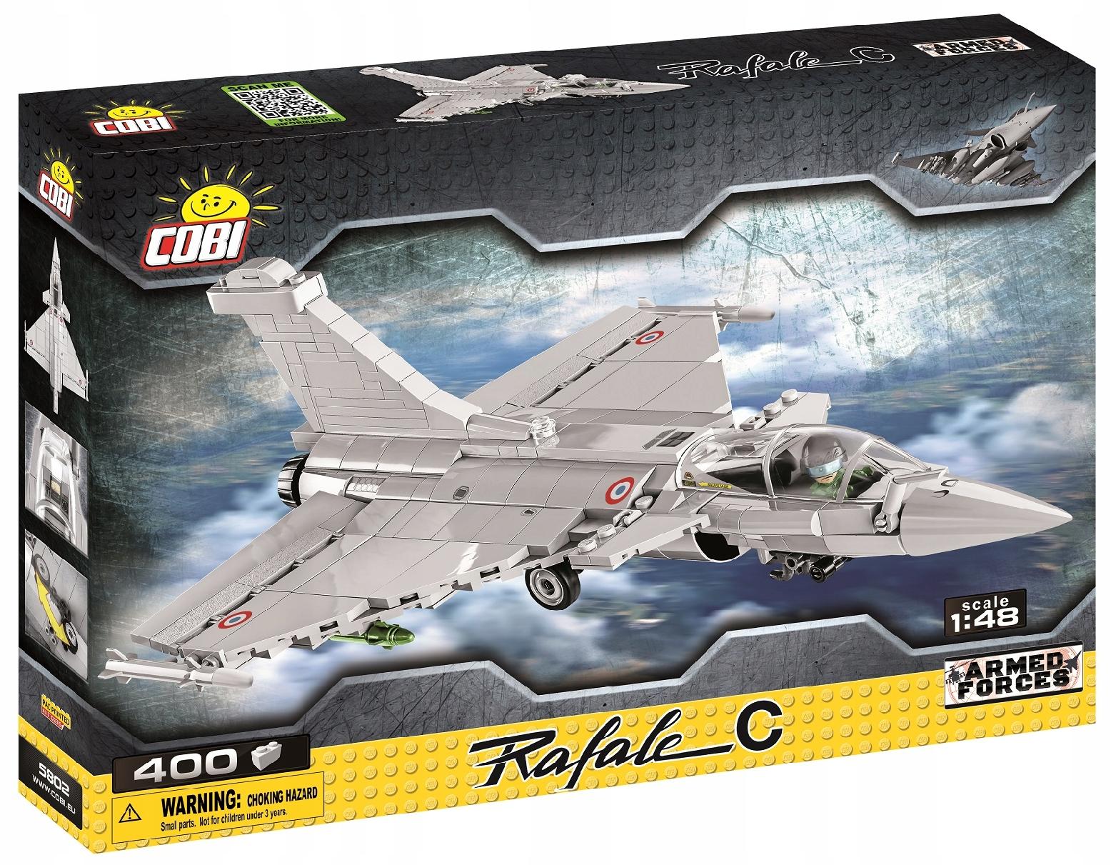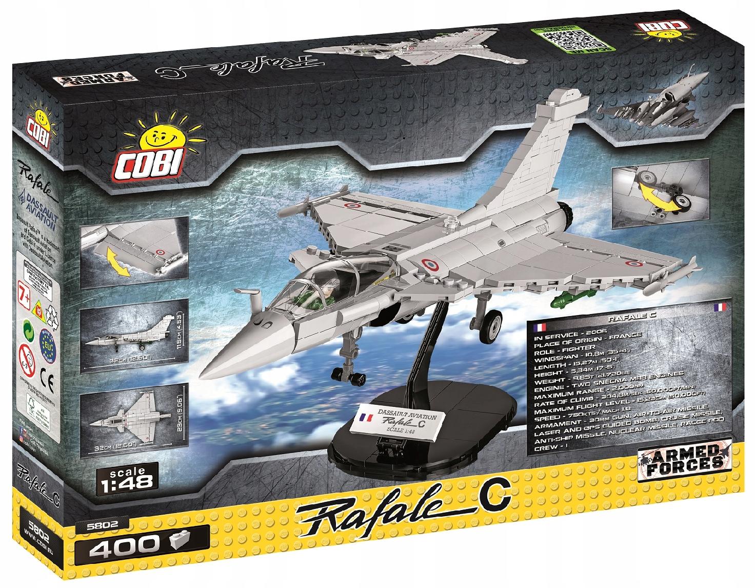 Model samolotu Rafale C w skali 1:48 wydany na podstawie oryginalnej licencji Dassault Aviation, stworzony w całości z klocków konstrukcyjnych COBI jest przeznaczony zarówno do zabawy dla najmłodszych fanów lotnictwa, ale ze względu na bardzo szczegółowe odwzorowanie nawet najmniejszych detali będzie to świetna ozdoba każdej kolekcji pasjonata militariów i współczesnego lotnictwa wojskowego. W modelu użyto wyłącznie wysokiej jakości, trwałych nadruków i nie zawiera żadnych naklejek. Posiada wiele ruchomych elementów takich jak koła, które można składać, lotki skrzydeł, owiewka kokpitu pilota czy wreszcie uzbrojenie.