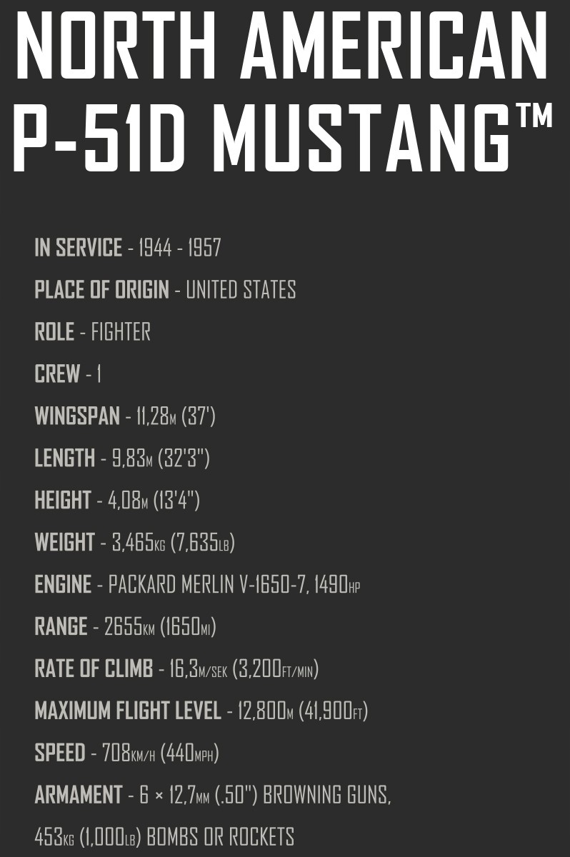 Był produkowany w zakładach North American Aviation w USA. Z powodzeniem wykorzystywany w siłach powietrznych USA i ich sojuszników podczas drugiej wojny światowej oraz w trakcie wojny koreańskiej. Bardzo udana konstrukcja z 1940 roku sprawiła, że samolot był nieustannie rozwijany aż do 1986 roku! W czasie 46 lat wyprodukowano ok. 15-16 tys. Mustangów. Obecnie wiele z tych maszyn znajduje się w rękach prywatnych, zupełnie tak jak ma to miejsce w przypadku filmu Top Gun: Maverick™.