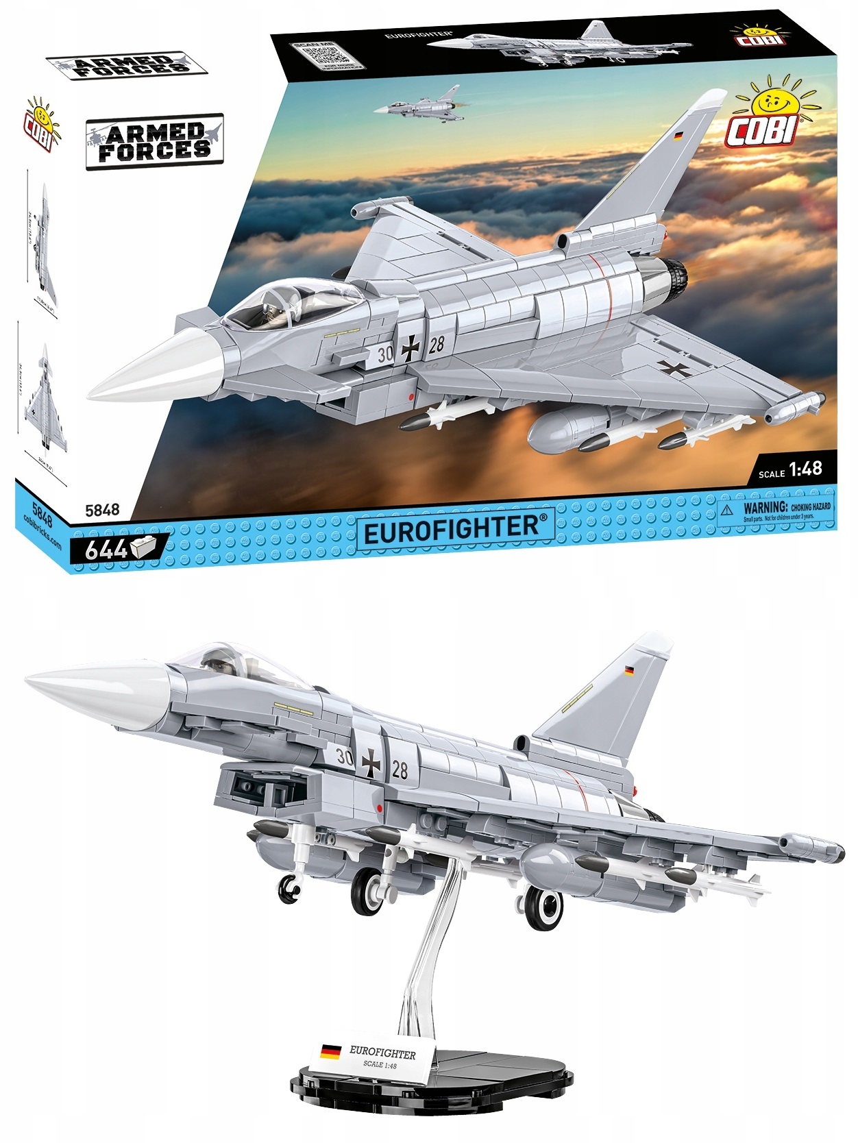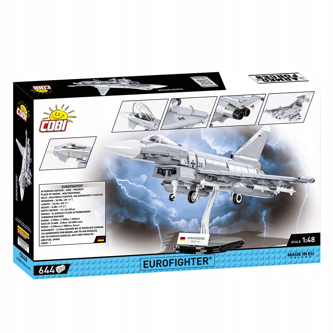 Z 644 najwyższej jakości klocków konstrukcyjnych COBI wybudujesz wielozadaniowy myśliwiec EUROFIGHTER® w barwach Niemieckich Sił Powietrznych.