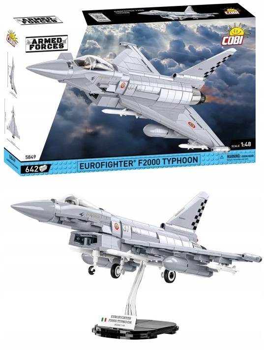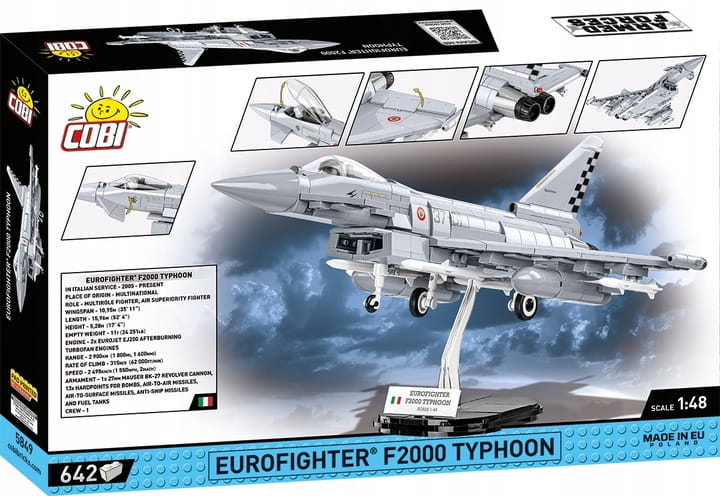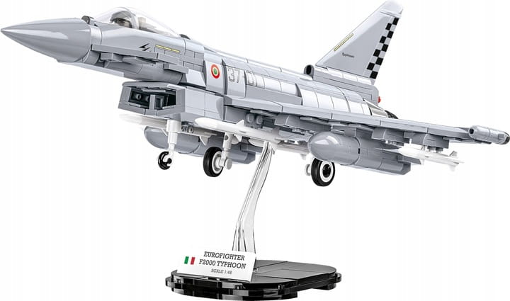 Z 642 najwyższej jakości klocków konstrukcyjnych COBI wybudujesz wielozadaniowy myśliwiec EUROFIGHTER® F2000 TYPHOON w barwach Włoskich Sił Powietrznych.