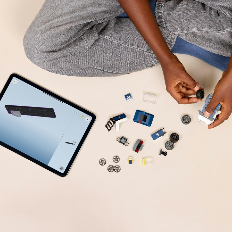 Dzieci poznają inny wymiar budowania dzięki aplikacji LEGO Builder, w której można powiększać i obracać model LEGO® City Pojazdy — Ciężarówka policyjna, przeglądać instrukcje w 3D, a także zapisywać i śledzić swoje postępy. Zestaw składa się z 71 elementów.