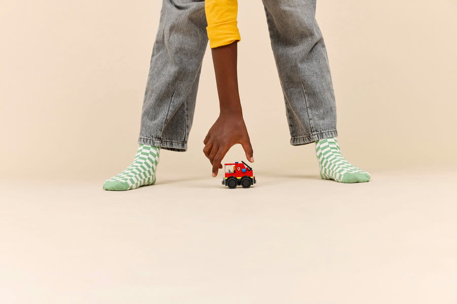 - Kreatywna zabawa na kołach — miniaturowy model wozu strażackiego ma charakterystyczne grube gumowe opony i podnoszoną drabinę strażacką, która zachęca do kreatywnej zabawy i opowiadania historii