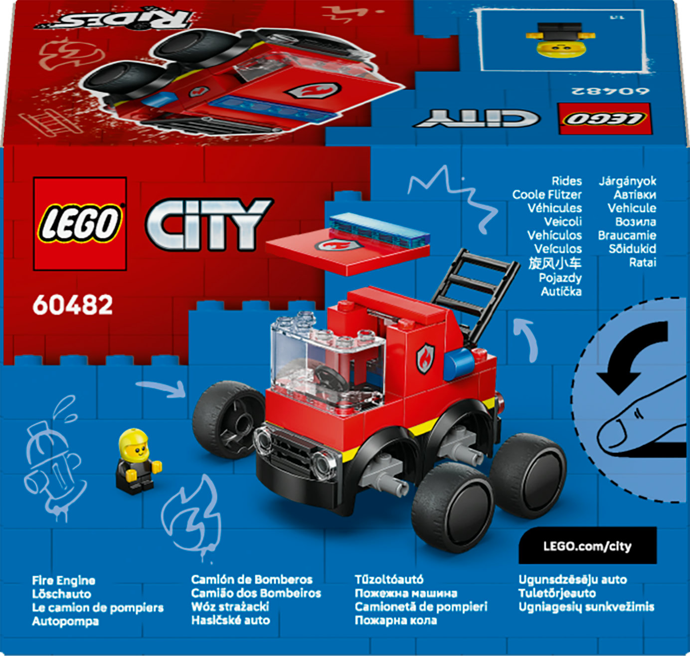 - Część serii LEGO® City Pojazdy — podaruj dzieciom więcej zabawy i przygód, łącząc ten zestaw z wozem strażackim z innymi zestawami z serii LEGO® City (sprzedawanymi osobno)