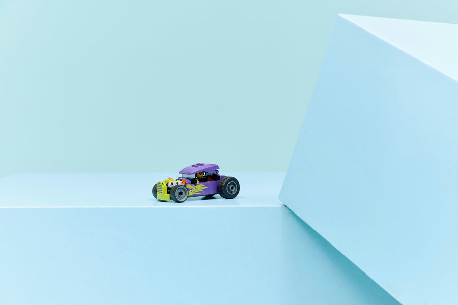 - Odgrywaj ekscytujące wyścigi — podnieś dach hot roda i umieść minifigurkę kierowcy za kierownicą, aby zapewnić szybką akcję i pobudzić wyobraźnię dzieci