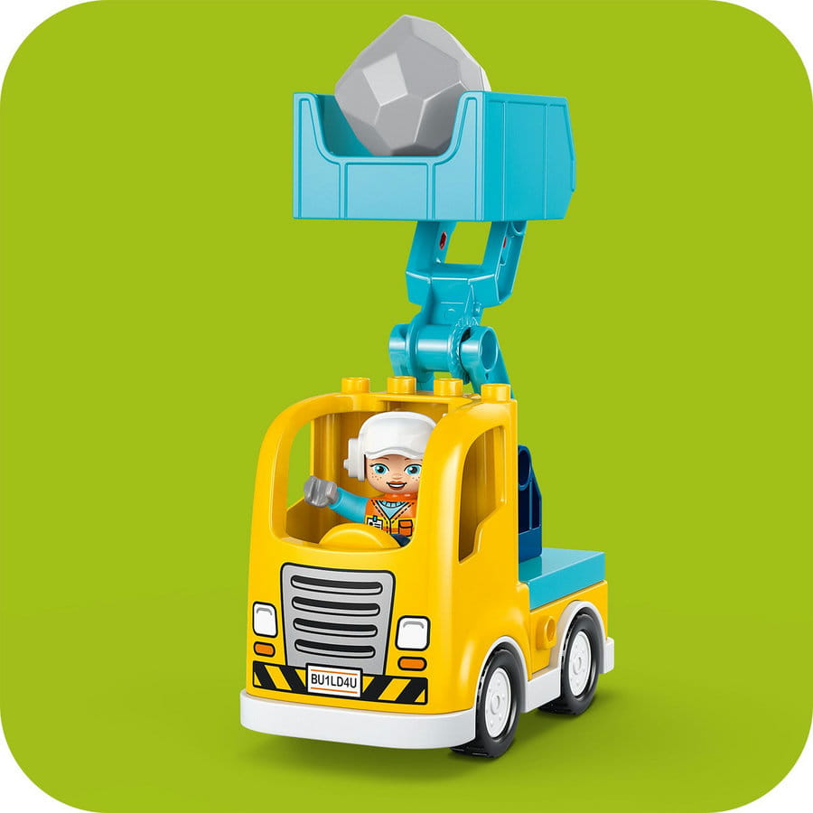- Jeden zestaw, sześć pojazdów — z klocków LEGO® DUPLO® dla małych dzieci można zbudować dwie lawety z różnymi hakami, ładowarkę, podnośnik nożycowy, wywrotkę lub koparkę z elastycznym ramieniem