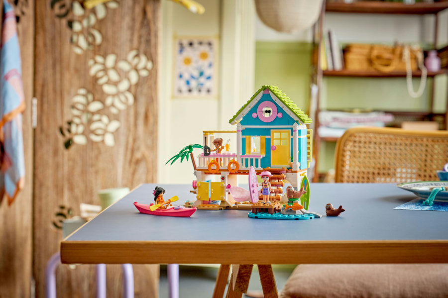 - Zestaw z domkiem na plaży do zbudowania — zainspiruj chłopców i dziewczynki w wieku od siedmiu lat do kreatywnego opowiadania historii dzięki zestawowi Domek na plaży z fokami, który zawiera trzy minilaleczki, dwie figurki fok i akcesoria