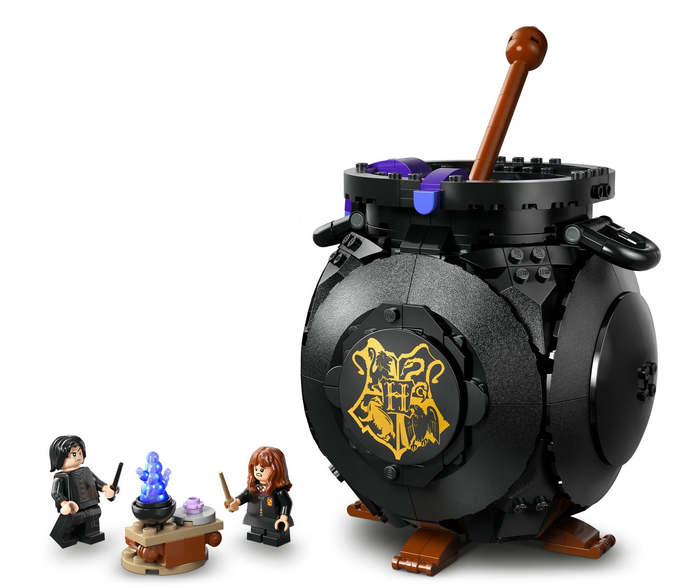 - Dwie minifigurki LEGO® Harry Potter™ — odtwórz lekcję eliksirów w Hogwarcie z profesorem Snape'em™ i Hermioną Granger™. Każda minifigurka ma swoją różdżkę