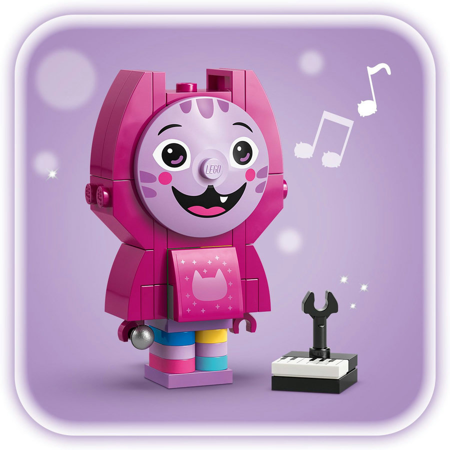 Dzieci mogą czerpać niekończącą się radość z zabawy, tworząc znane postacie, odgrywając ulubione historie i wymyślając własne przygody. Zestaw zawiera sześć figurek do zbudowania, każda z akcesoriami znanymi z serialu. Syrenkotka ma diament, Tekturzątko ma obraz Gabi, Wróżkicia ma konewkę, Kiciuś Panduś ma domek dla lalek, Łakotekma tort, a Daniel Dżem „DJ” Kocimiętka ma pianino. Na każdej podstawce znajdują się dwie odczepiane figurki. Ten uroczy zestaw dla dziewczynek i chłopców to świetny pomysł na prezent dla fanów serialu Koci domek Gabi. Pewność siebie podczas budowania zapewnia dzieciom aplikacja LEGO Builder.
