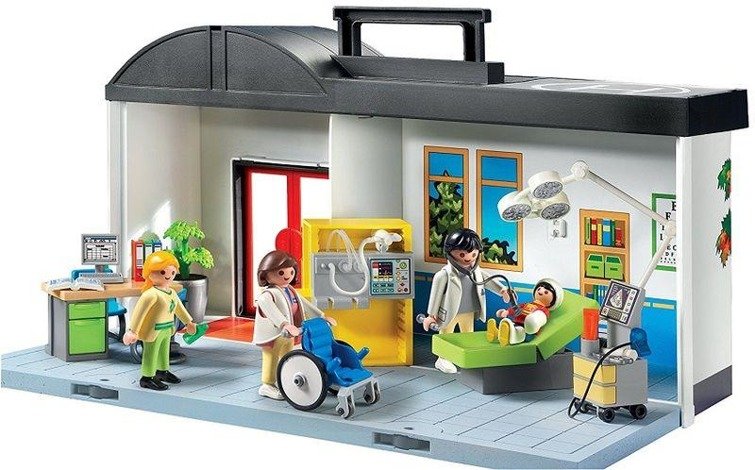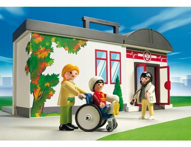 Załóż gips, opatrunek, przepisz maść i medykamenty. Zapisz chorego na wizytę kontrolną i upewnij się, że powrócił do zdrowia. Do zestawu dołączono dwie figurki lekarzy oraz figurki mamy i dziecka. Zestaw klocków Playmobil rozwija dziecięcą wyobraźnię i kreatywność, umożliwiając im wcielanie się w różne role. Przenośny szpital to dobry pomysł, by zapoznać dziecko z tematem chorób i ich leczenia oraz z najważniejszym sprzętem medycznym.