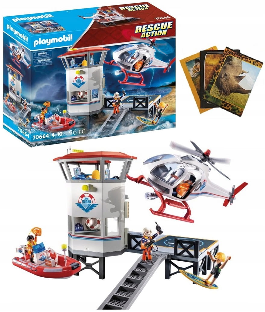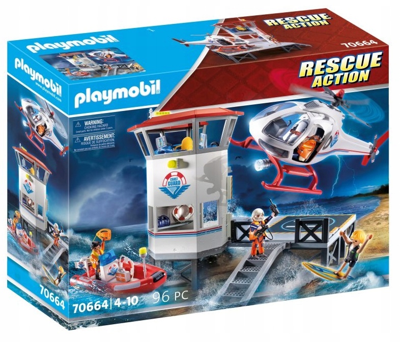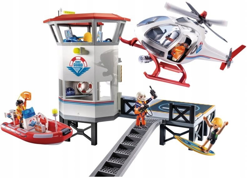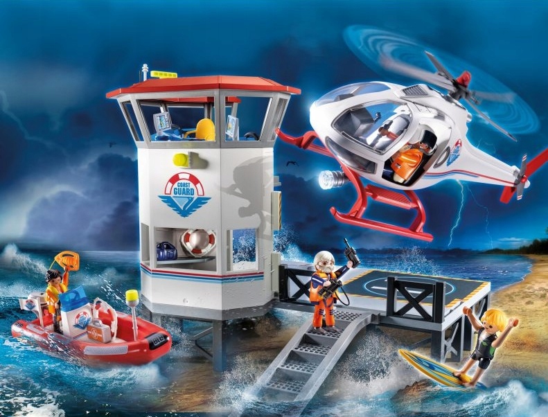 Zestaw zawiera wieżę ratowniczą ze schodami i platformą obserwacyjną z lądowiskiem dla helikoptera. Surfer znalazł się w niebezpieczeństwie, kiedy zaskoczyła go pogoda i porywcze fale. Na szczęście straż przybrzeżna czuwa i wysyła z pomocą helikopter oraz łódź ratunkową. Udaj się na akcję i pomóż surferowi bezpiecznie dostać się na ląd. W zestawie znajdują się trzy figurki ratowników i figurka surfera.