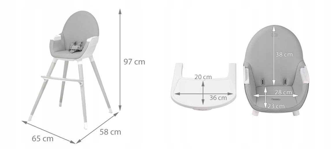 - Możliwość stosowania jako tradycyjne krzesełko dla starszego dziecka, zmiana funkcji w kilka sekund