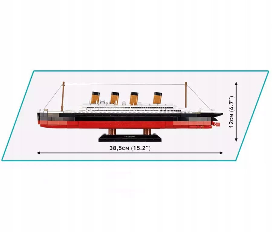 Precyzyjnie odwzorowuje kształt i bryłę Titanica, a liczne detale, takie jak ruchome dźwigi, śruby i ster, zapewniają autentyczność i możliwość interakcji.