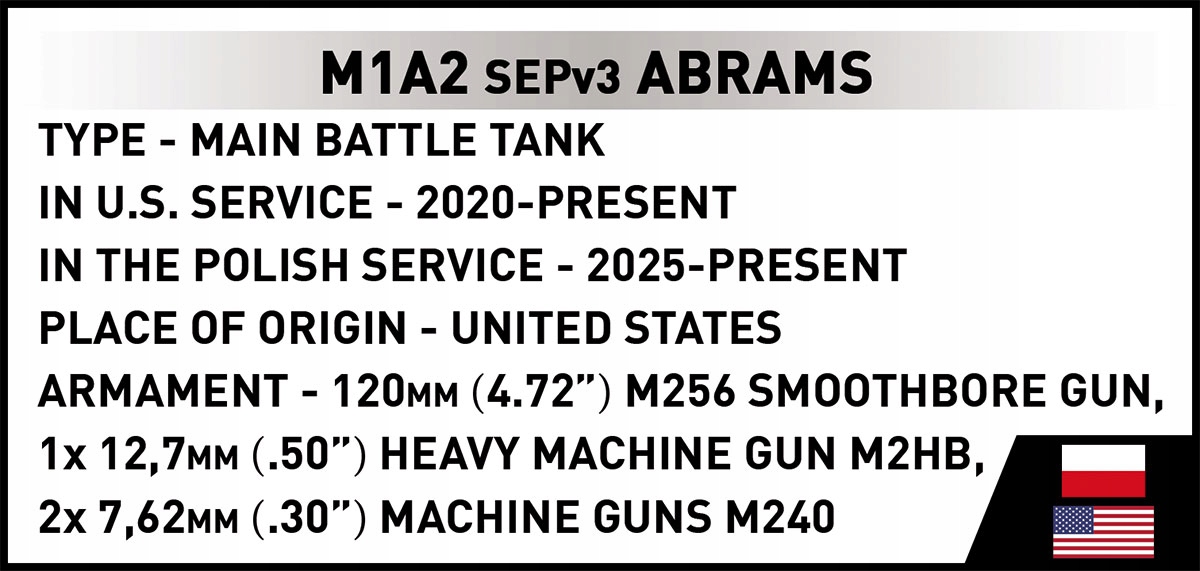 Zalety zestawu Abrams M1A2 w polskich oznaczeniach: