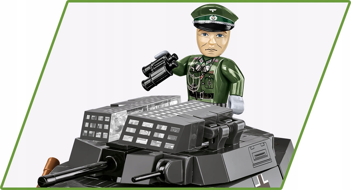 - Figurka w zestawie: W zestawie znajduje się figurka niemieckiego porucznika z lornetką, co zwiększa możliwość interaktywnej zabawy i wykorzystania modelu w dioramach.