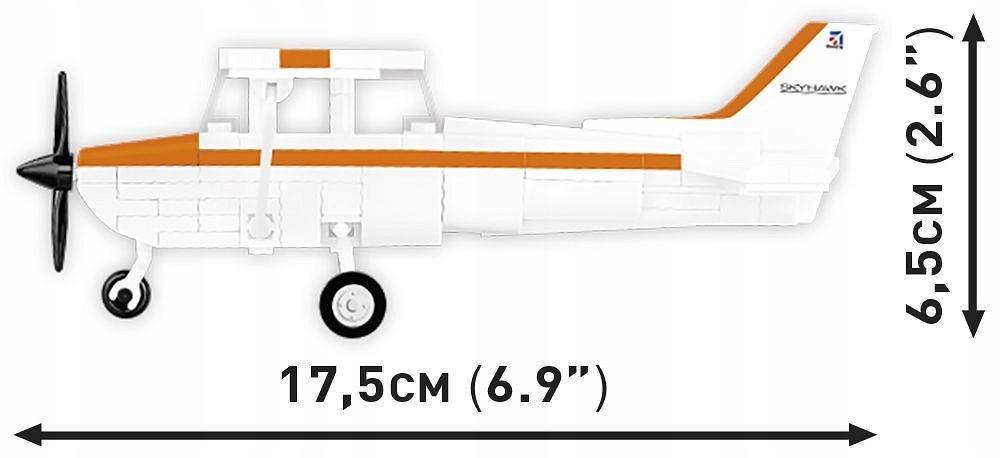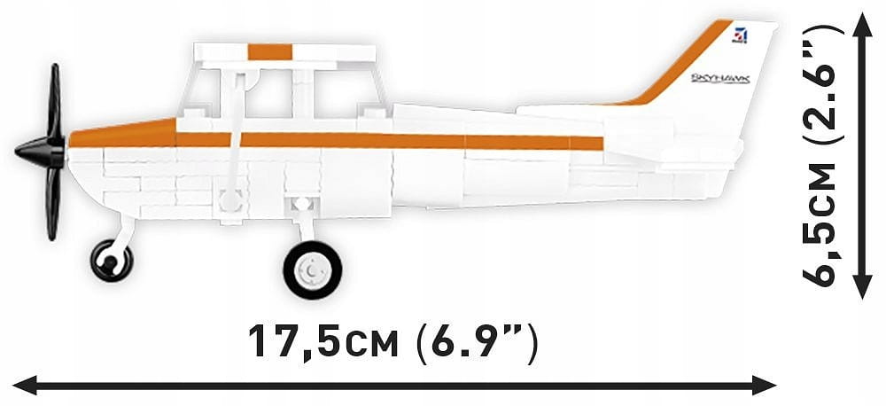 Swoim rozmiarem doskonale pasuje do kolekcji naszych współczesnych samolotów. Model posiada obracające się koła i ruchome śmigło. Na klockach znajdują się nadruki. Tutaj nie ma naklejek! Specjalnie na potrzeby tego zestawu zaprojektowaliśmy nowy kształt klocka - statecznik pionowy, aby nasz model możliwie realistycznie naśladował swój pierwowzór. Budowa zestawu jest prosta i przebiega bezproblemowo dzięki papierowej czytelnej instrukcji. Klockowa Cessna 172 Skyhawk to model obowiązkowy dla pasjonatów lotnictwa cywilnego.