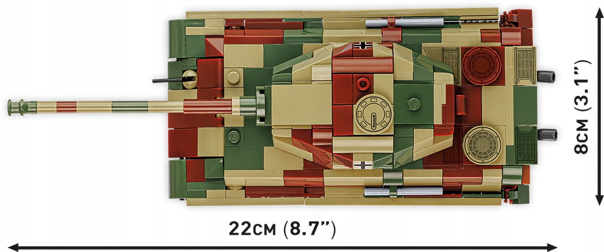 Model stworzony z 500 precyzyjnie dopasowanych klocków oddaje wszystkie charakterystyczne cechy tego ciężkiego niemieckiego czołgu, który był jednym z najpotężniejszych pojazdów bojowych tamtych czasów.
