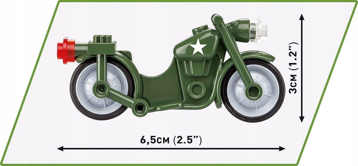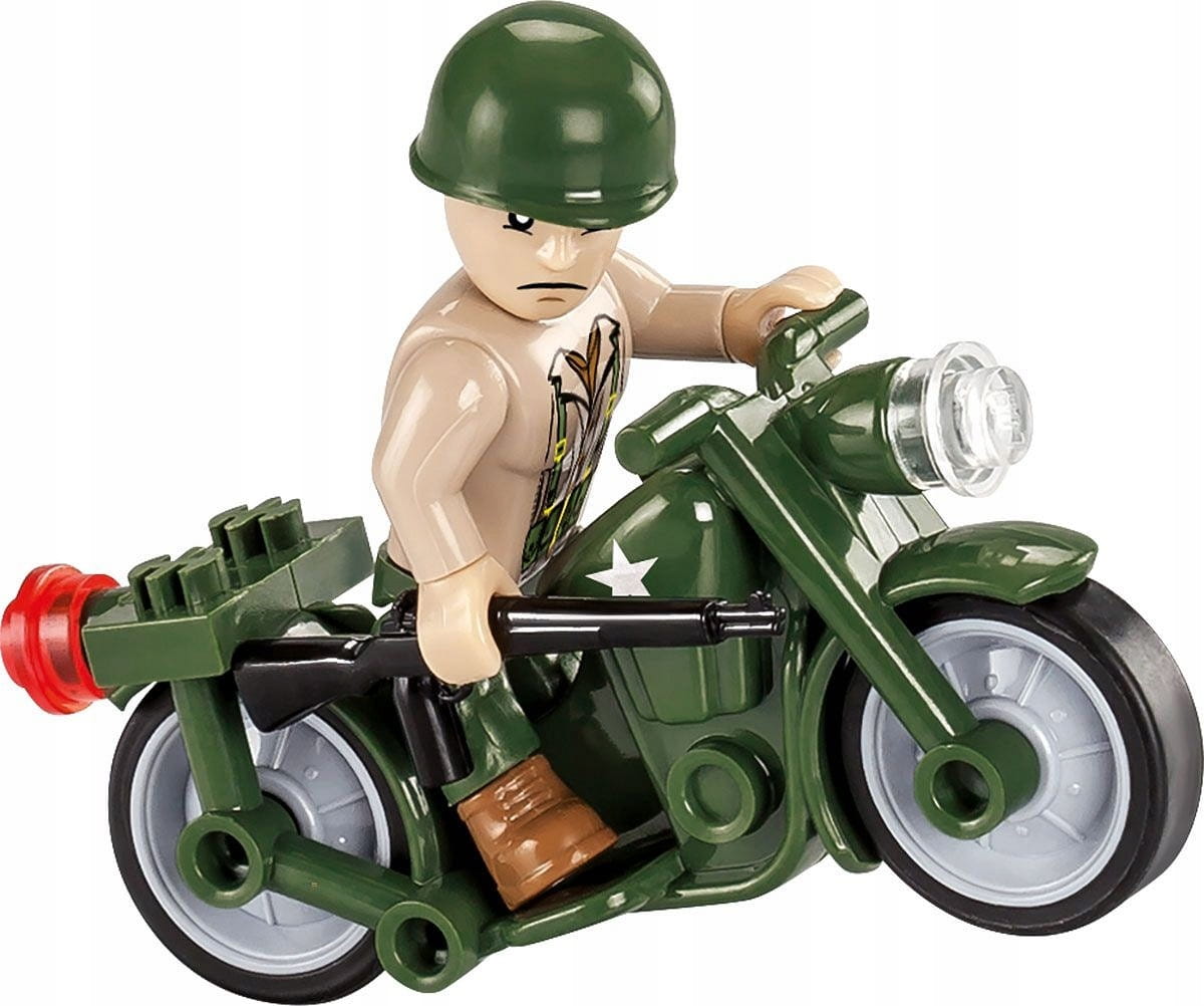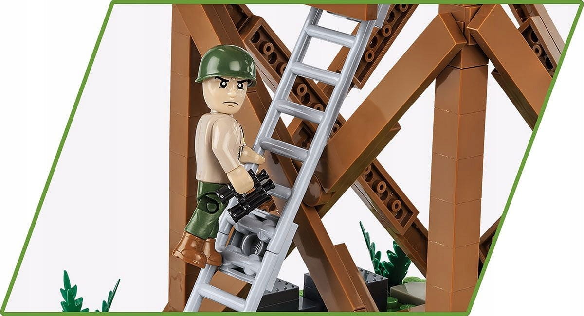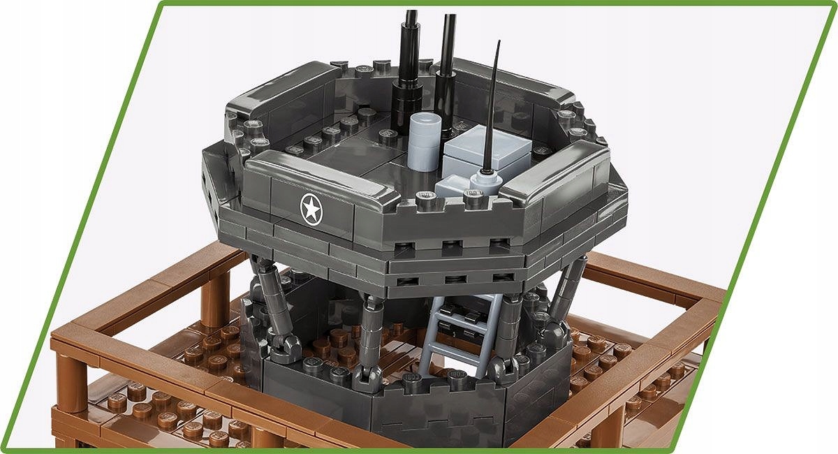 W wersji klockowej to świetna wieża kontroli lotów dla twojego lotniska oraz punkt obserwacyjny! Jej wysokość to aż 38 cm! Do zestawu dołączona jest figurka amerykańskiego żołnierza na motocyklu oraz figurka amerykańskiej sygnalistki. W zestawie znajdziemy akcesoria takie jak amunicja, skrzynka, łopata i beczki i worki z piaskiem. Figurki oraz klocki zawierają wysokiej jakości nadruki, które nie ścierają się nawet podczas intensywnego użytkowania!