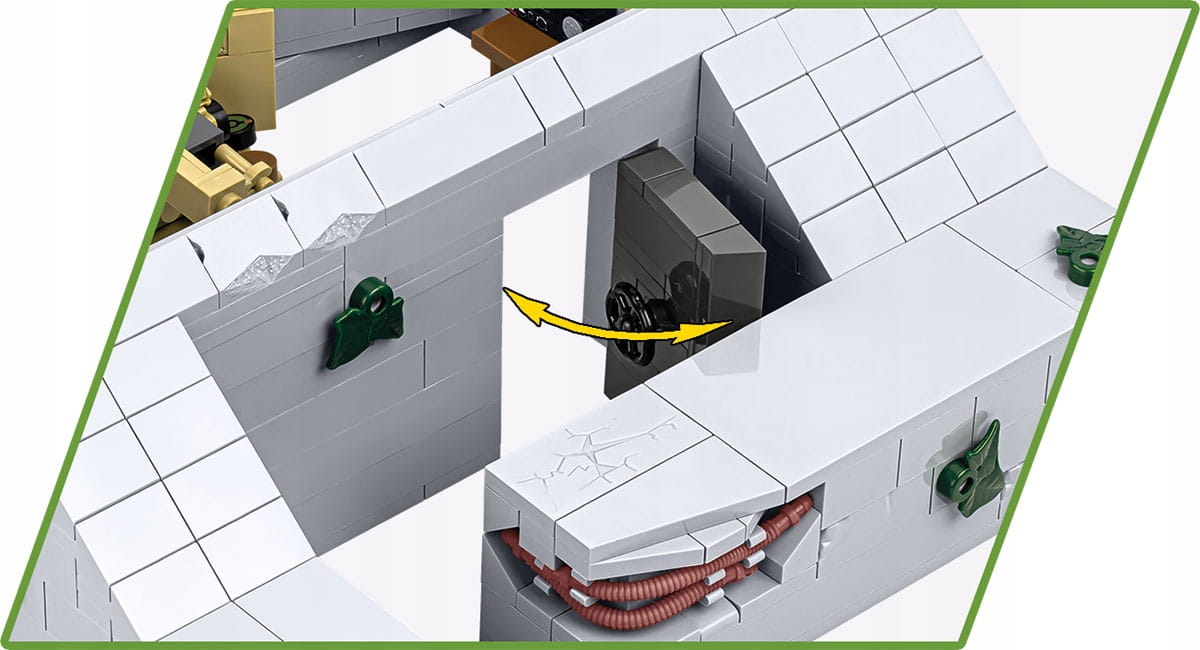 - Otwierany dach – Model posiada otwierany dach, co pozwala na wgląd do wnętrza bunkra. Ta funkcja ułatwia zabawę i zachęca do odgrywania scenek, ale także daje możliwość zobaczenia, jak wyglądało wnętrze schronu i co się w nim kryło.