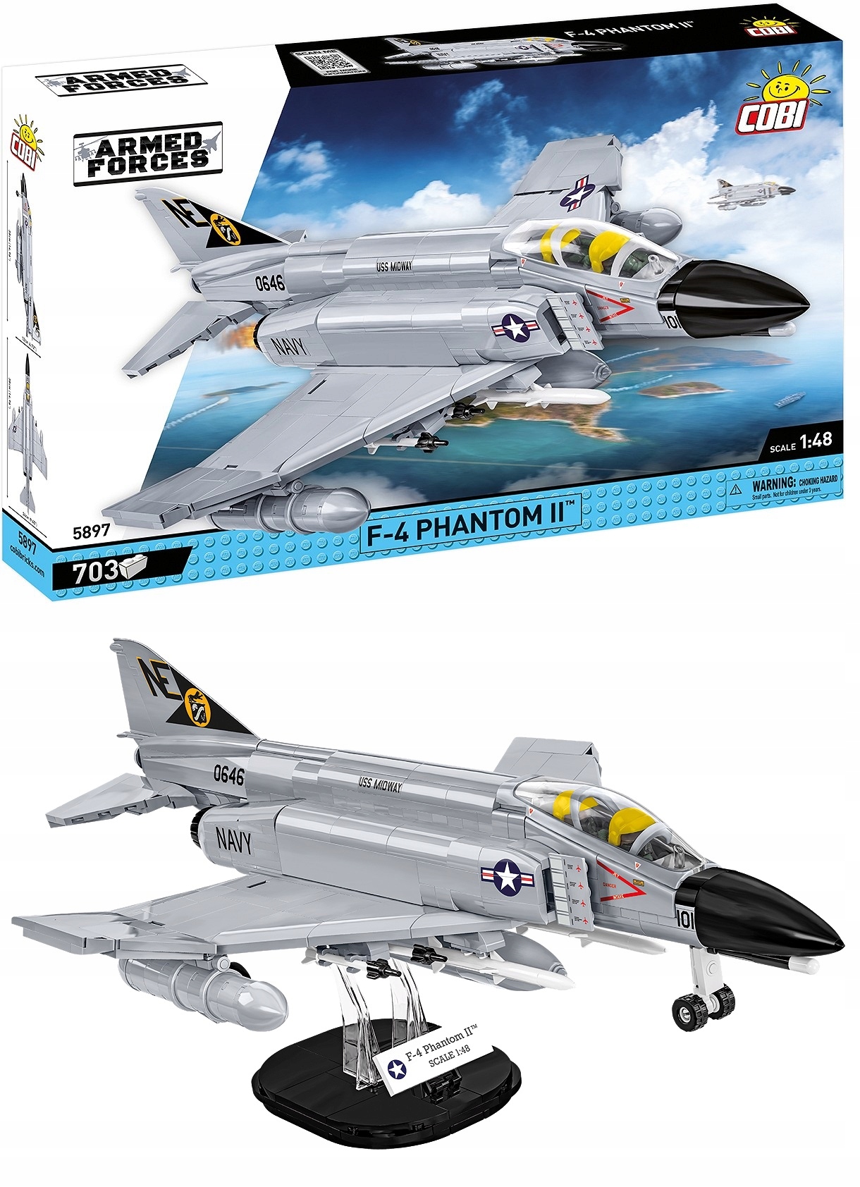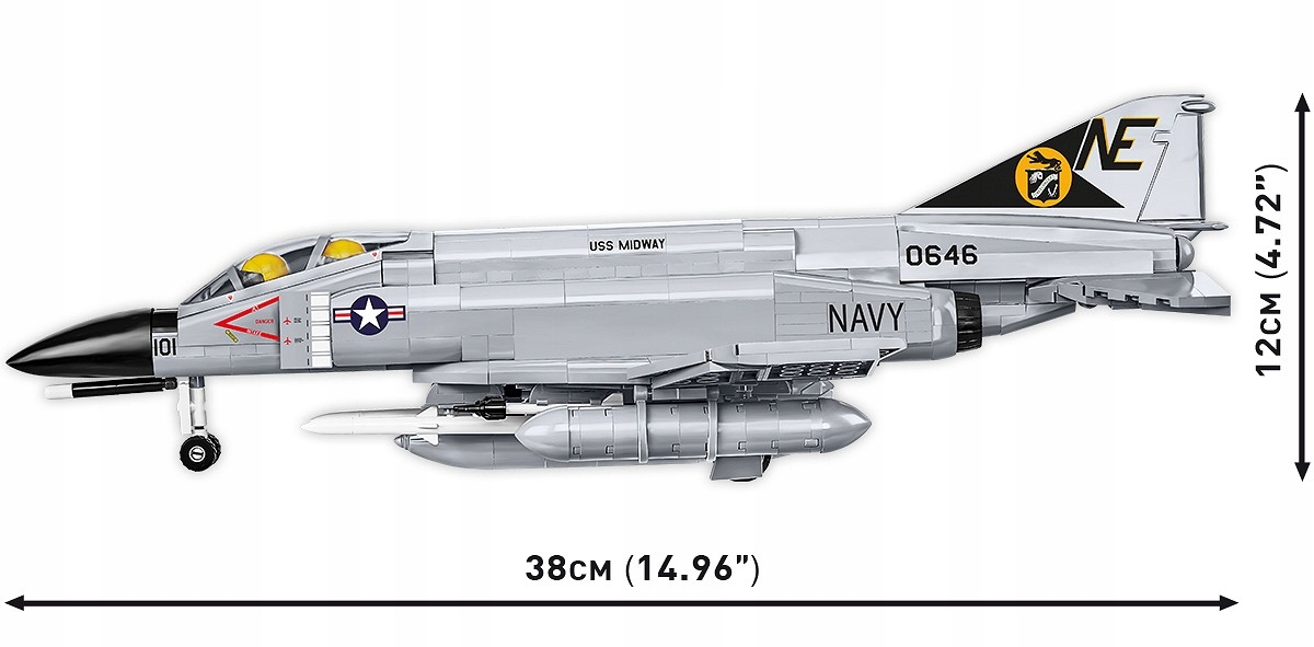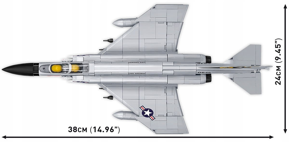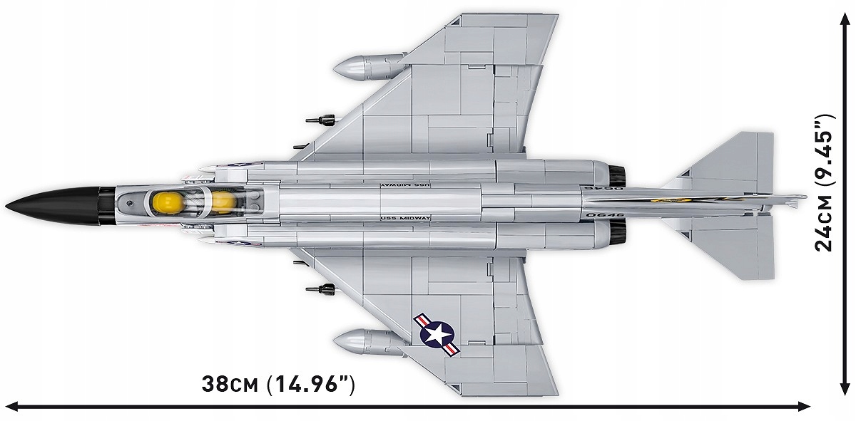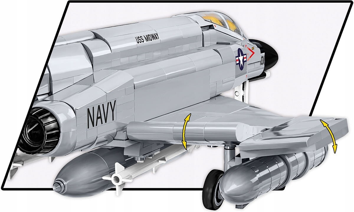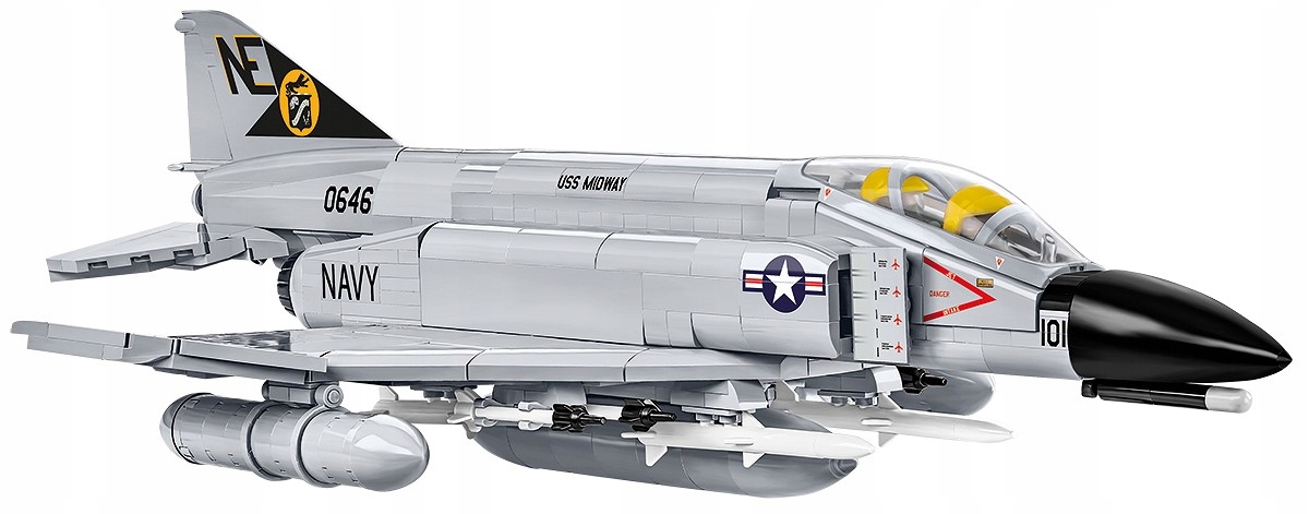 Z 703 klocków konstrukcyjnych COBI zbudujesz kultowy samolot F-4 Phantom II w jednostki z lotniskowca USS Midway, który można zwiedzać w San Diego (USA).