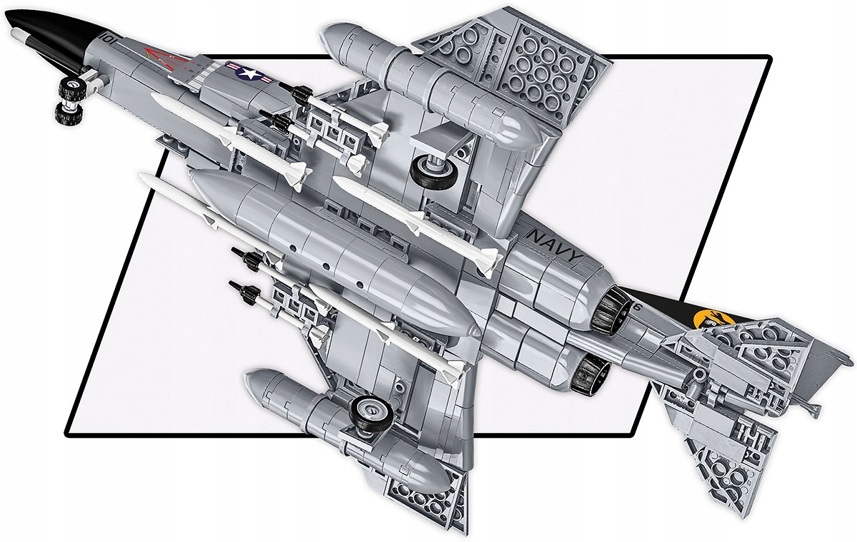 Licencyjny zestaw został zbudowany na podstawie planów samolotu F-4 przy zachowaniu najwyższej dbałością o klockowe detale. Samolot posiada charakterystyczne nadruki, ruchome lotki oraz odpinane podwozie i uzbrojenie. Kabina jest otwierana i można w niej umieścić symboliczne mini figurki pilotów. W komplecie znajduje się klockowa podstawka ekspozycyjna oraz tabliczka zawierająca nazwę, skalę samolotu.