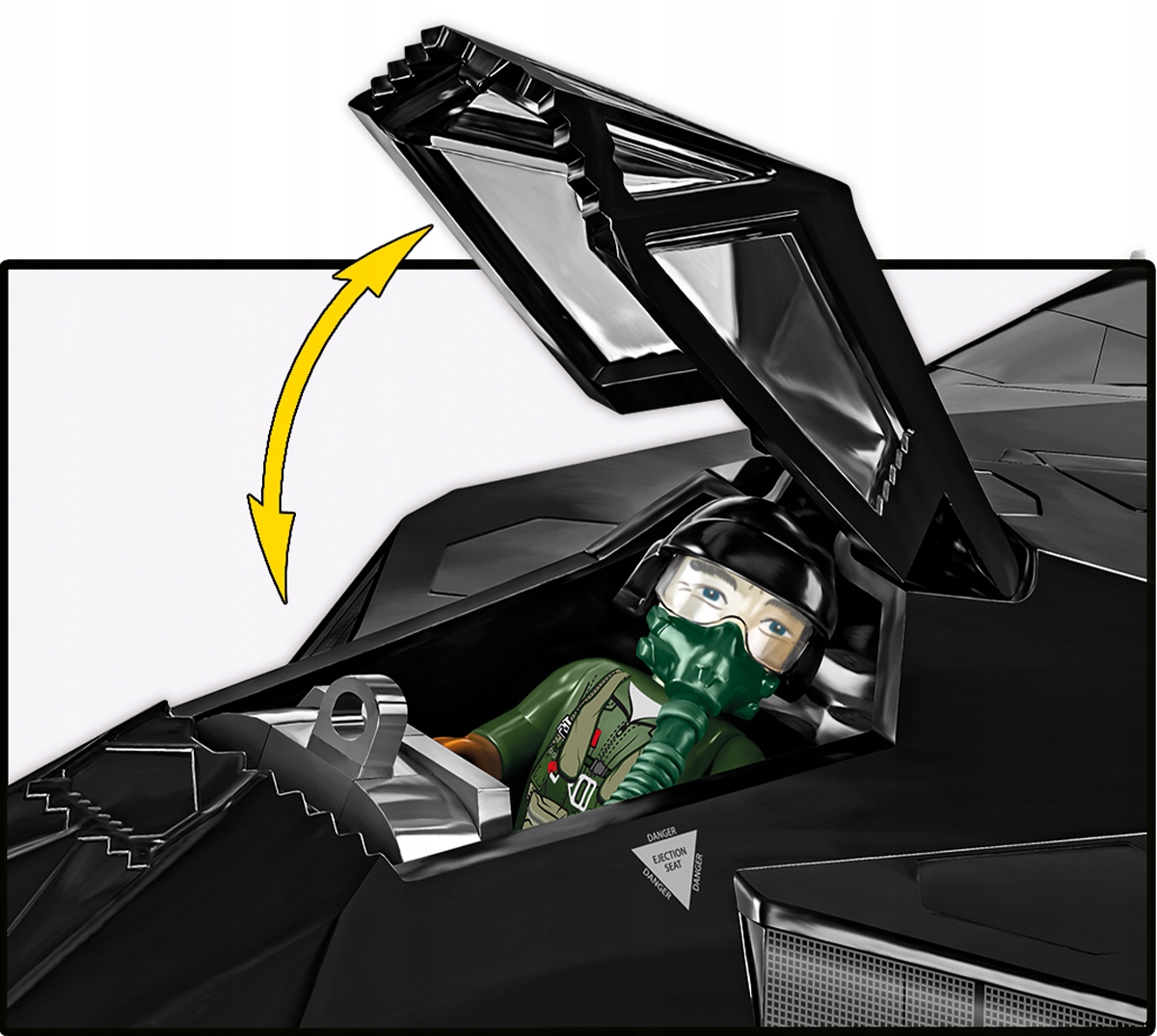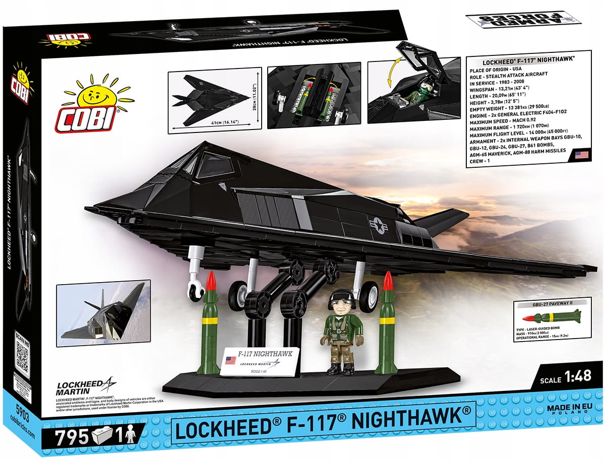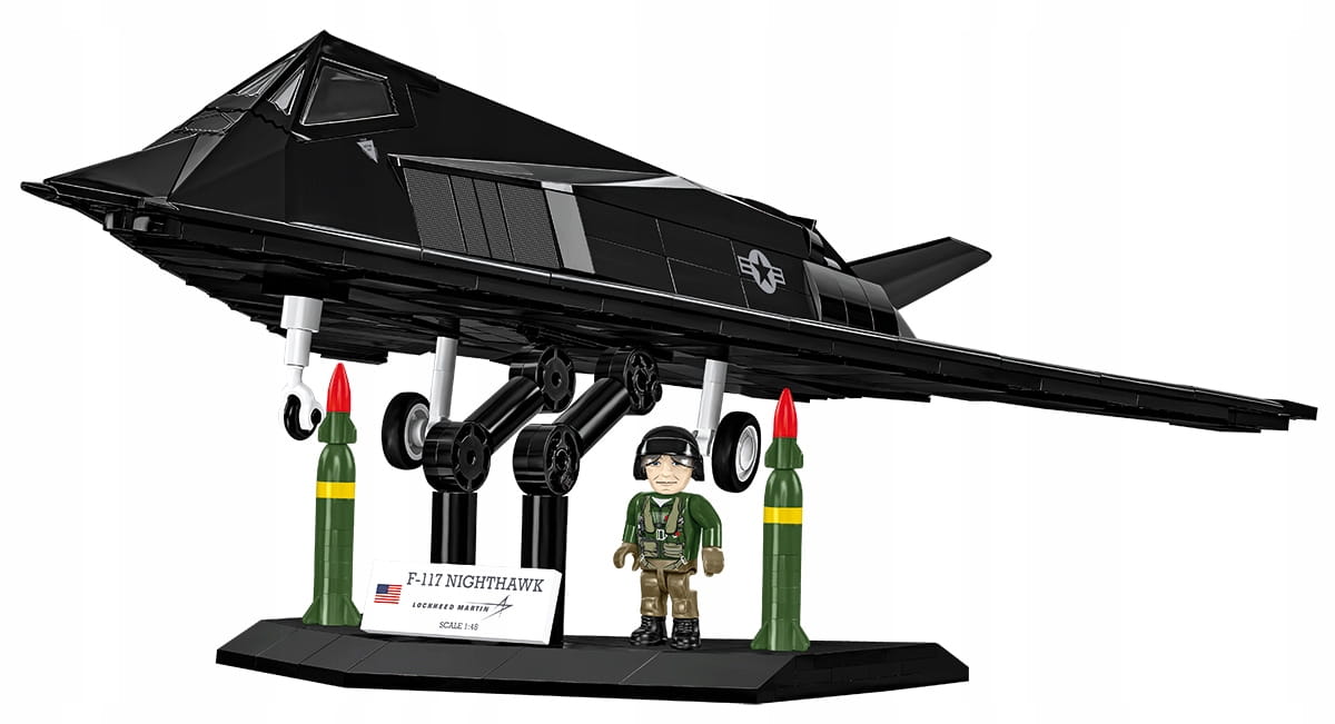 - Figurka pilota – Do zestawu dołączona jest również unikalna figurka pilota w stroju z epoki – ubrany w odwzorowany kombinezon lotniczy, wyposażony w detale takie jak kask, kamizelka, pasy oraz inne charakterystyczne gadżety używane przez pilotów F-117. Figurka została zaprojektowana z dbałością o historyczną autentyczność i stanowi świetne uzupełnienie zestawu.