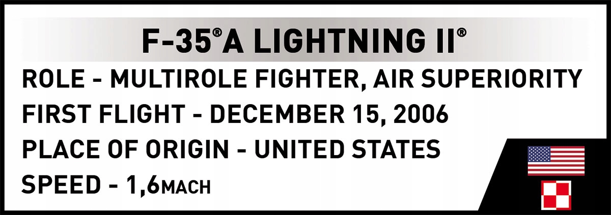 F-35A Lightning II „Husarz” to wyjątkowy zestaw konstrukcyjny, który pozwala Ci zbudować legendarną maszynę przyszłości, która wkrótce będzie latać barwach wojska polskiego!