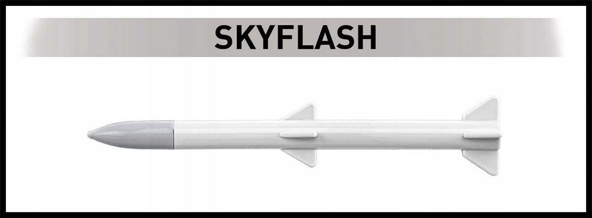 - Realistyczna funkcjonalność – Ruchome elementy sterujące, składane podwozie, otwierany kokpit oraz dodane uzbrojenie takie jak pociski powietrze-powietrze Skyflash i AIM-9 sprawiają, że model świetnie sprawdza się nie tylko jako eksponat, ale i interaktywny zestaw do zabawy.