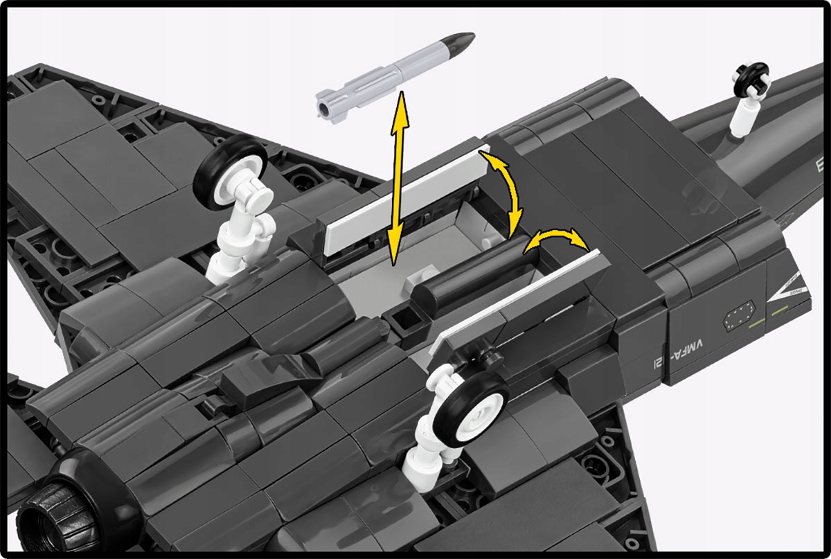 - 614 szczegółowych elementów - Każdy klocek został precyzyjnie zaprojektowany, by jak najwierniej oddać charakter i wygląd prawdziwego samolotu F-35B.