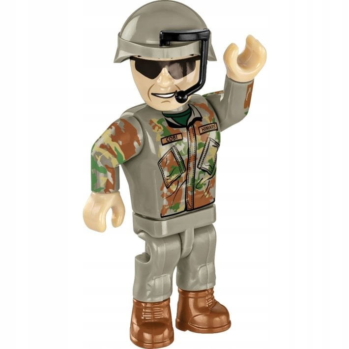 W zestawie znajduje się figurka artylerzysty oraz klocki z nadrukami umożliwiające zbudowanie pojazdu w wybranych przez budowniczego oznaczeniach (Polska, USA lub Ukraina).