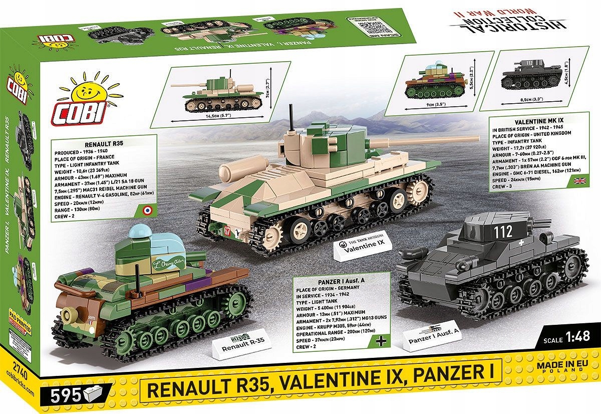 Klocki Cobi 2740 zestaw 3 czołgów Renault R35 - Valentine IX - Panzer I