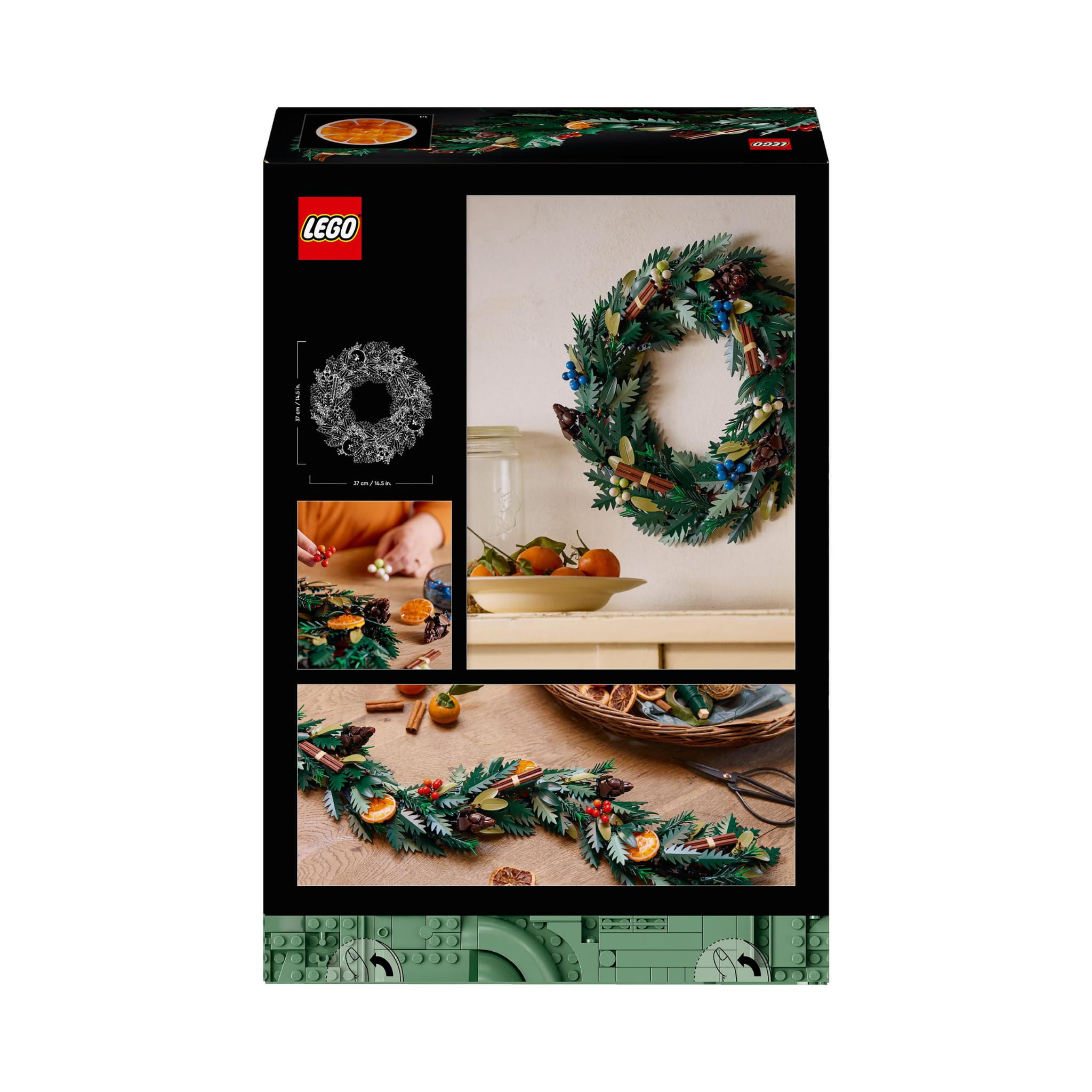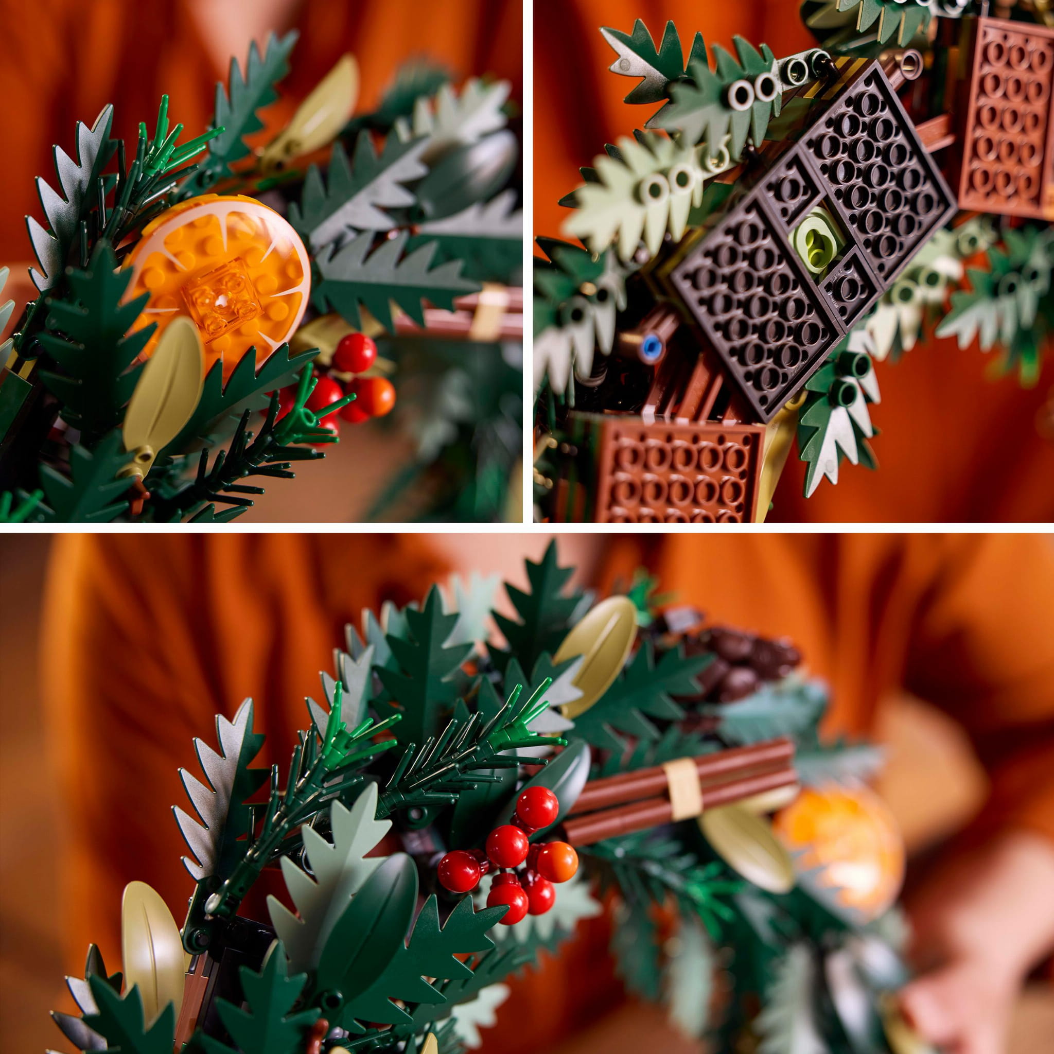 Ten imponujący wieniec LEGO® stanowi dekorację stołu lub ścian, lecz sprawdzi się także jako prezent na święta lub inną specjalną okazję.