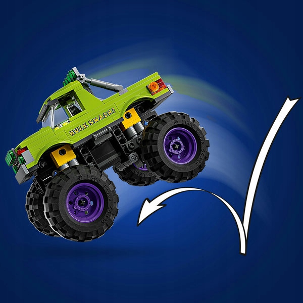 - Terenowy monster truck do zbudowania — pojazd superbohatera ma fotel kierowcy z miejscem na minifigurkę Hulka i duże, obrotowe koła z amortyzowanym zawieszeniem