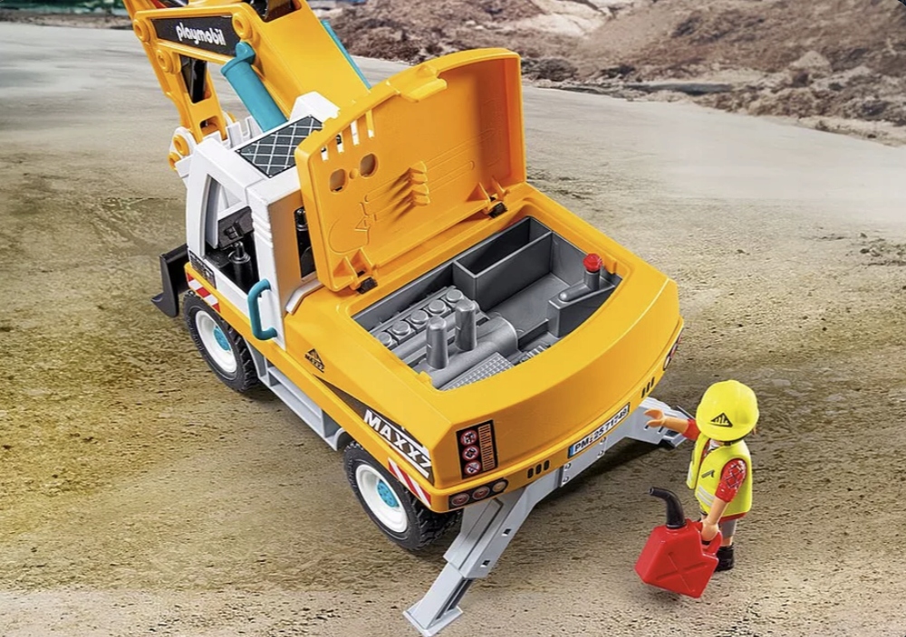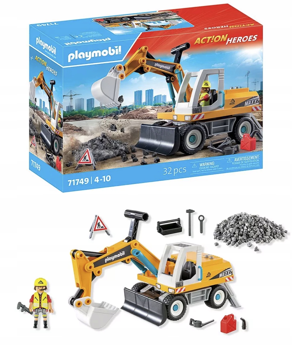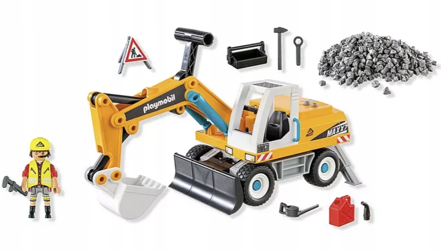 - Akcesoria: 1 koparka z kabiną kierowcy, duża łopata, podpory i łopata, 1 kanister z benzyną, 1 materiał sypki, 1 sprzęt budowlany, 1 kamizelka ochronna.