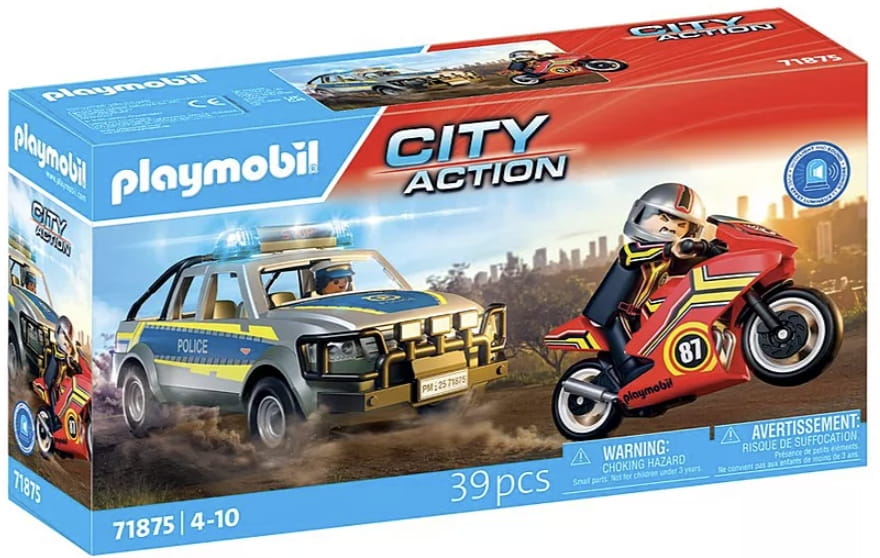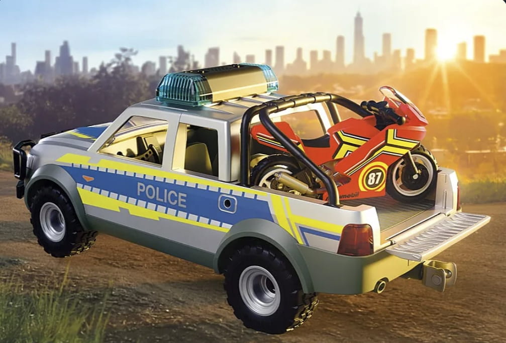 Zdejmowane wyposażenie, sprytna kolczatka oraz mnóstwo realistycznych akcesoriów sprawiają, że ten zestaw PLAYMOBIL to idealna propozycja dla małych fanów akcji na kołach!