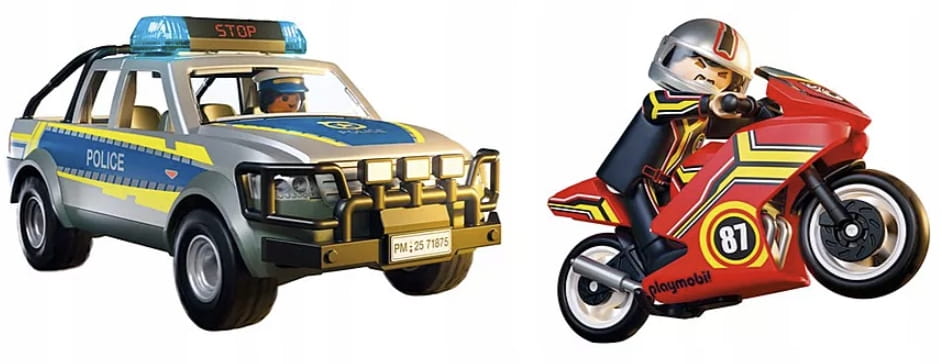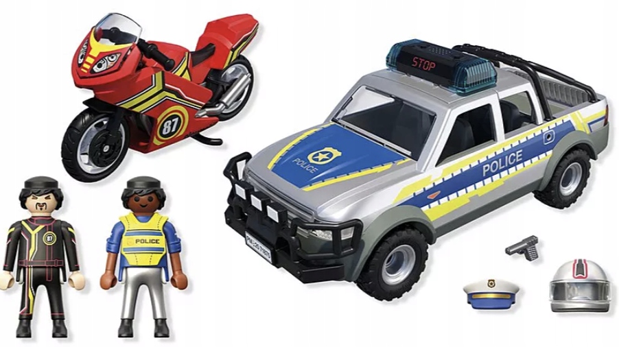 - Akcesoria: 1 pick-up z przestrzenią ładunkową, 1 policyjny moduł świetlny i dźwiękowy, 1 motocykl, 1 czapka policyjna, 1 policyjna kamizelka ostrzegawcza, 1 pistolet z uchwytem, 1 kask motocyklowy, 1 pasek z gwoździami.