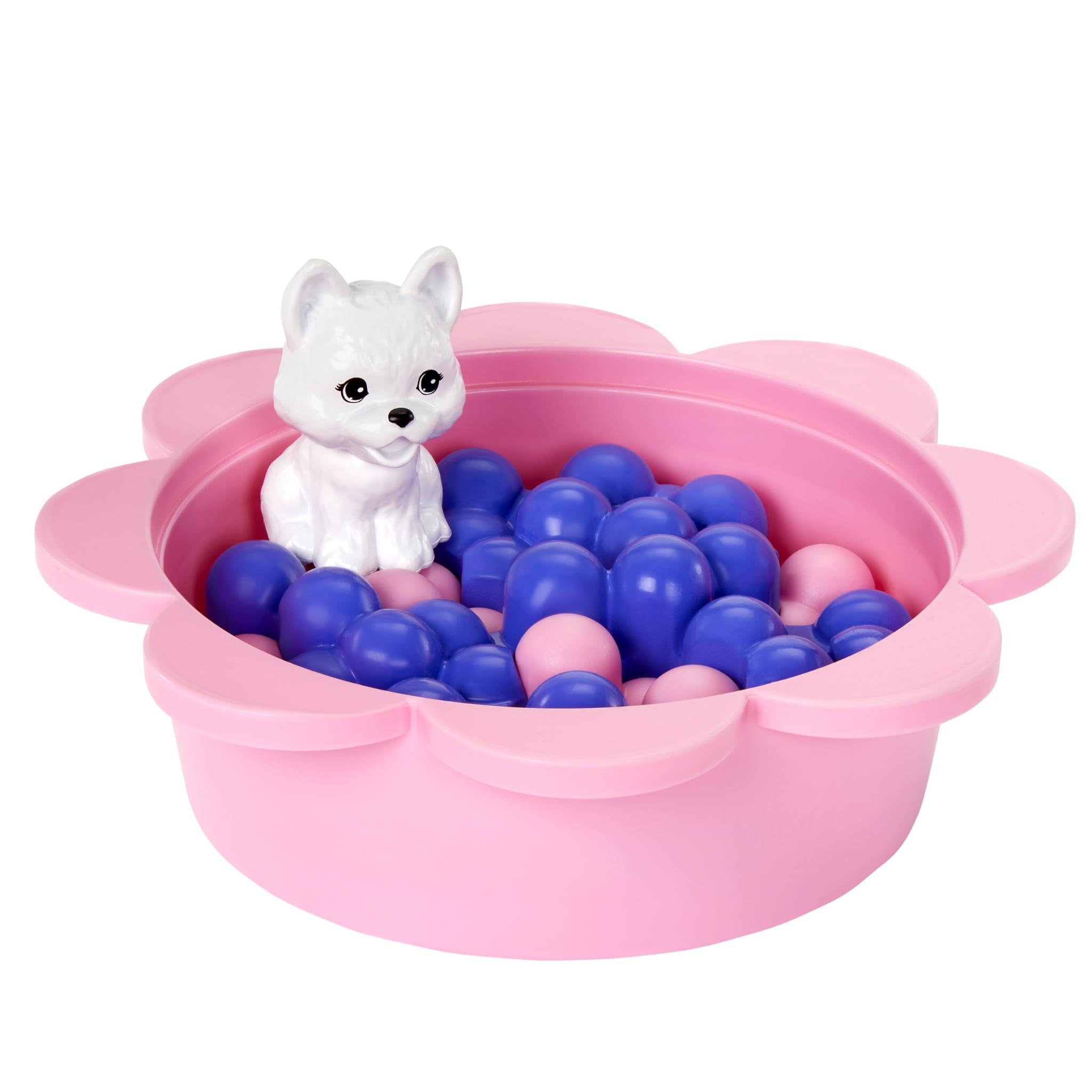 Teraz, zorganizuj przyjęcie: wspiąć szczenięta na huśtawkę i zagrać w basenie z kulkami; zamknij pokrywę, aby przekształcić ją w stół i usiąść na stołkach, gdy nadejdzie czas na ciasto.